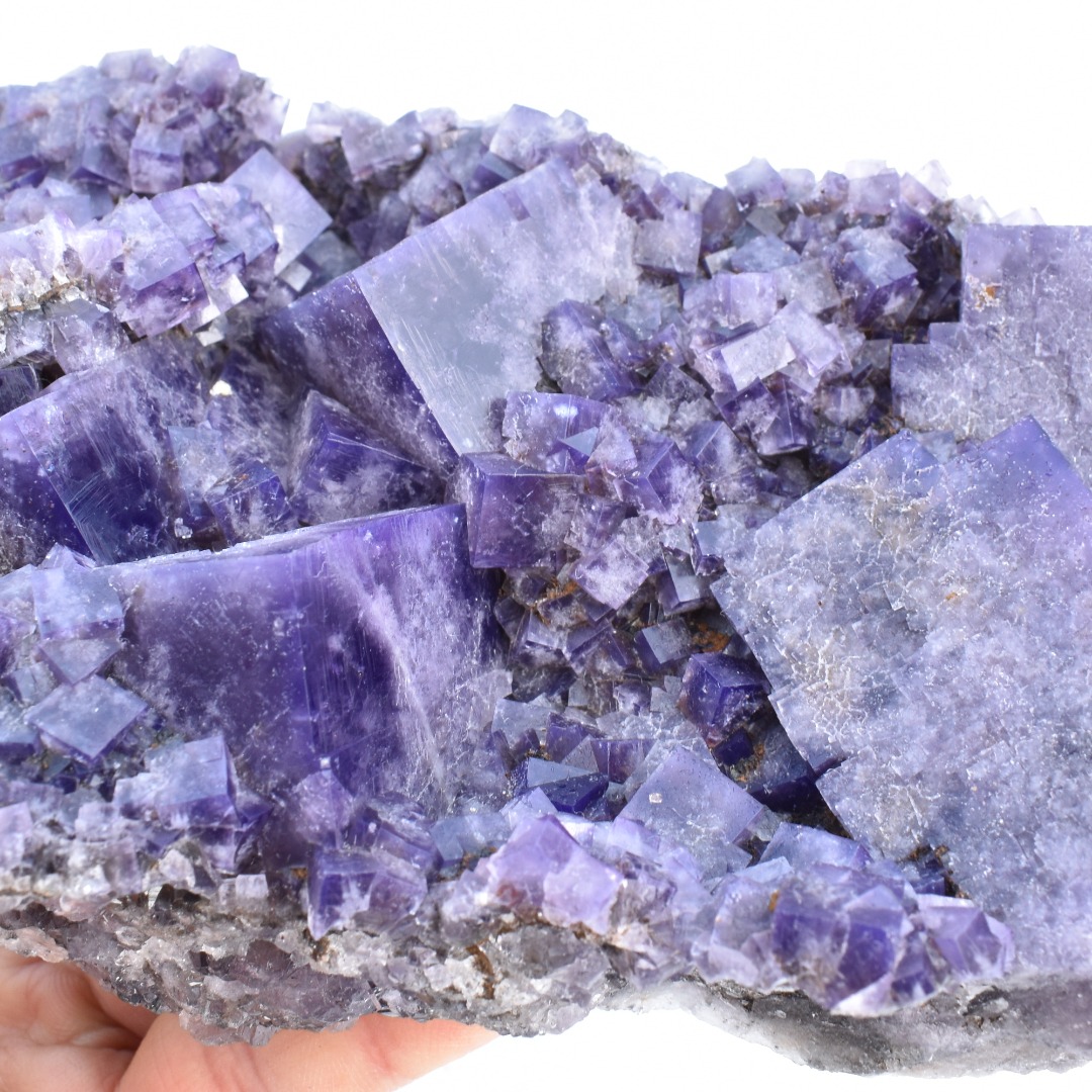 - These Fluorite clusters have been sourced directly from the Greenlaws mine, UK and we have personal connections with the miners. Most Fluorite from Greenlaws are a rich purple colour which is shown best under natural sunlight. Each crystal has been carefully hand selected with several inter-growing cubic crystals.