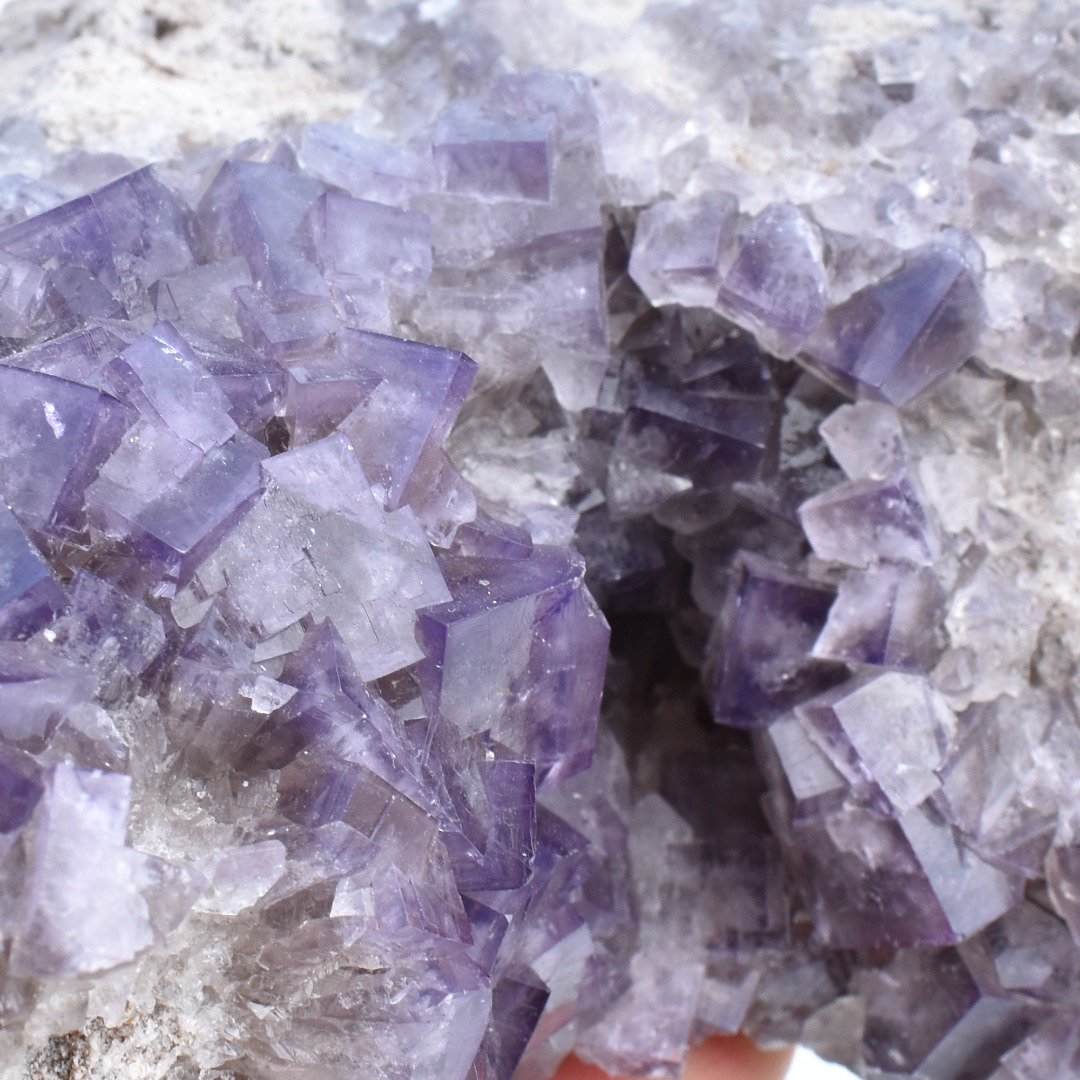 - These Fluorite clusters have been sourced directly from the Greenlaws mine, UK and we have personal connections with the miners. Most Fluorite from Greenlaws are a rich purple colour which is shown best under natural sunlight. Each crystal has been carefully hand selected with several inter-growing cubic crystals.