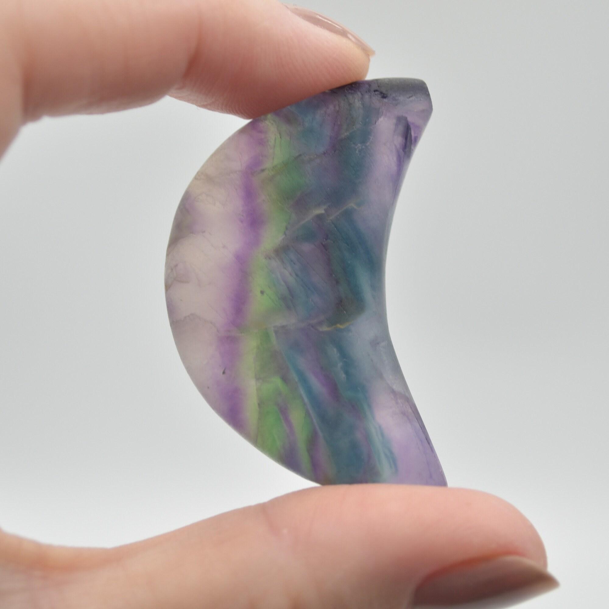 Natural Rainbow Fluorite Semi-precious Gemstone Carved Crescent Moon