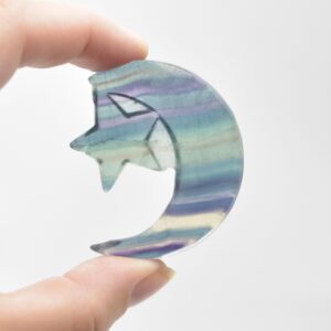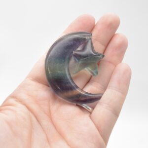 Rainbow Fluorite Crystal Carved Moon and Star – 5cm #03