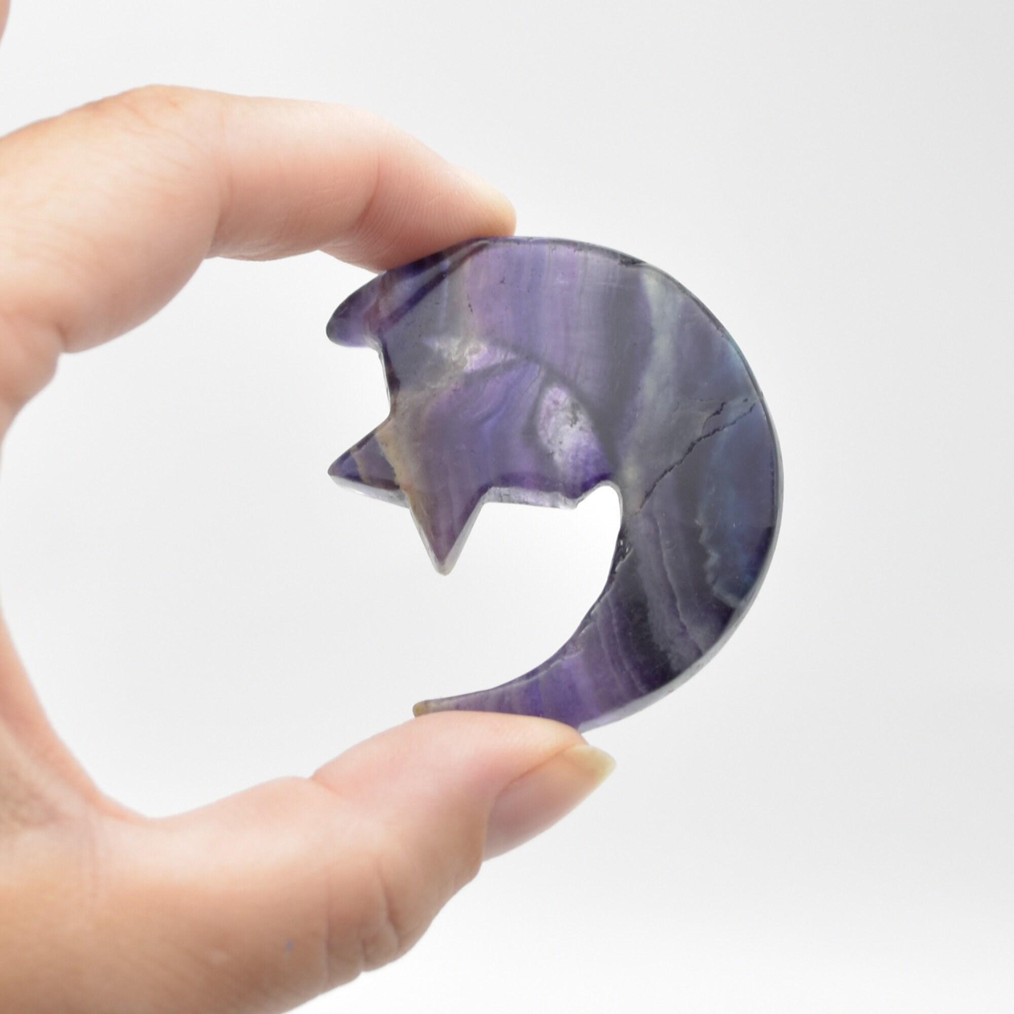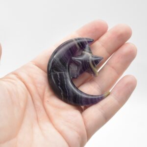 Rainbow Fluorite Crystal Carved Moon and Star – 5cm #14