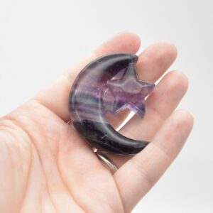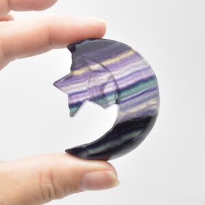 Rainbow Fluorite Crystal Carved Moon and Star – 5cm #19
