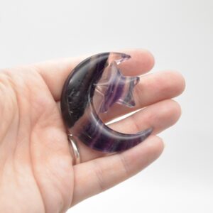 Rainbow Fluorite Crystal Carved Moon and Star – 5cm #20