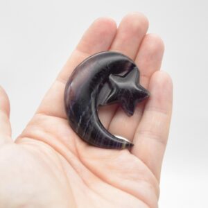 Rainbow Fluorite Crystal Carved Moon and Star – 5cm #25