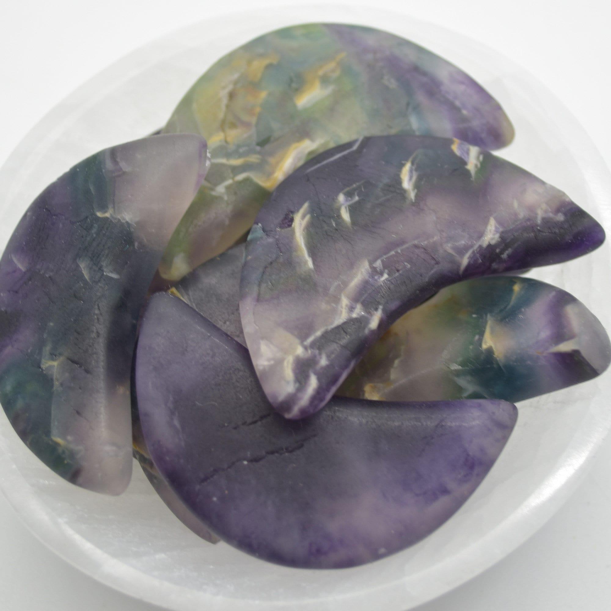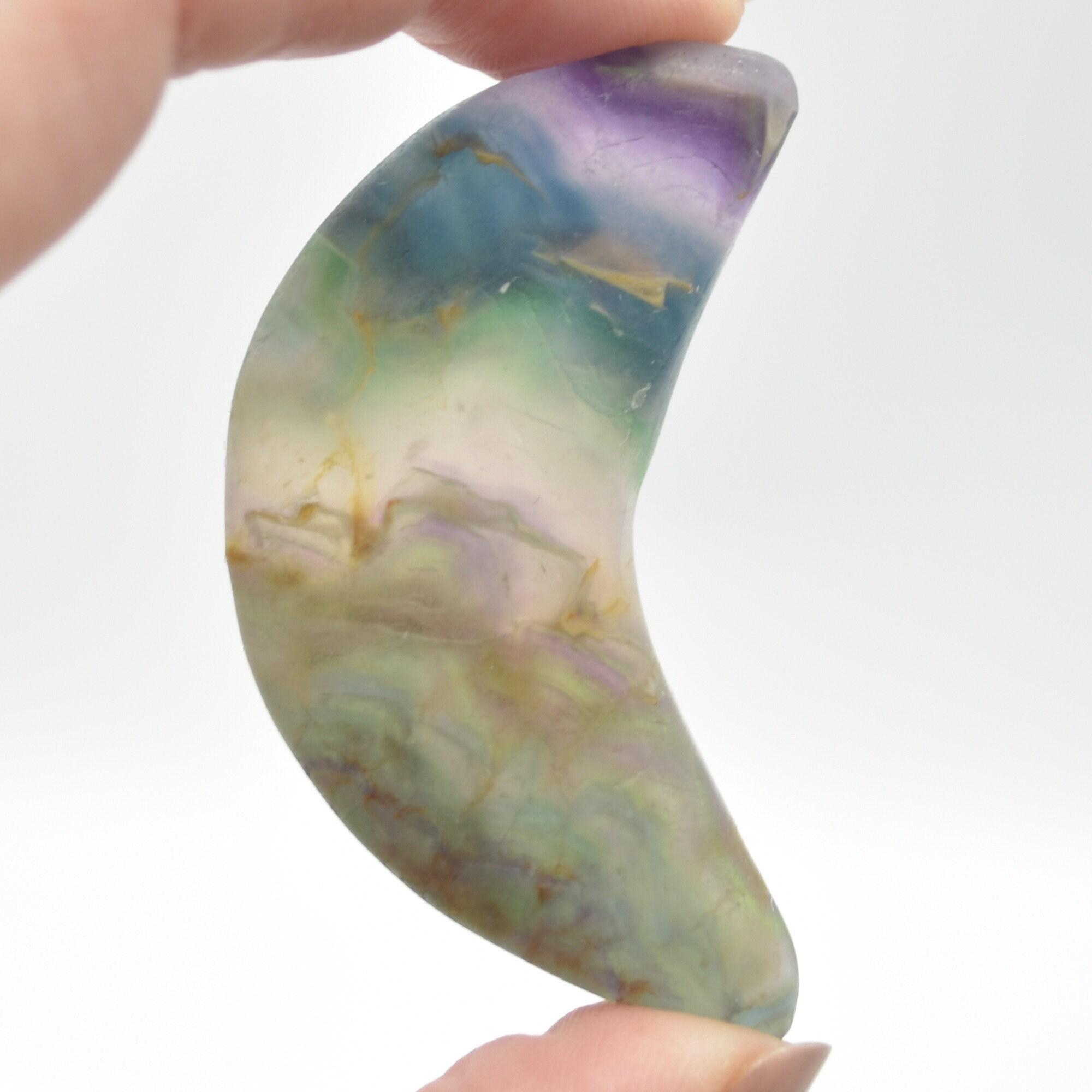 Natural Rainbow Fluorite Semi-precious Gemstone Carved Crescent Moon