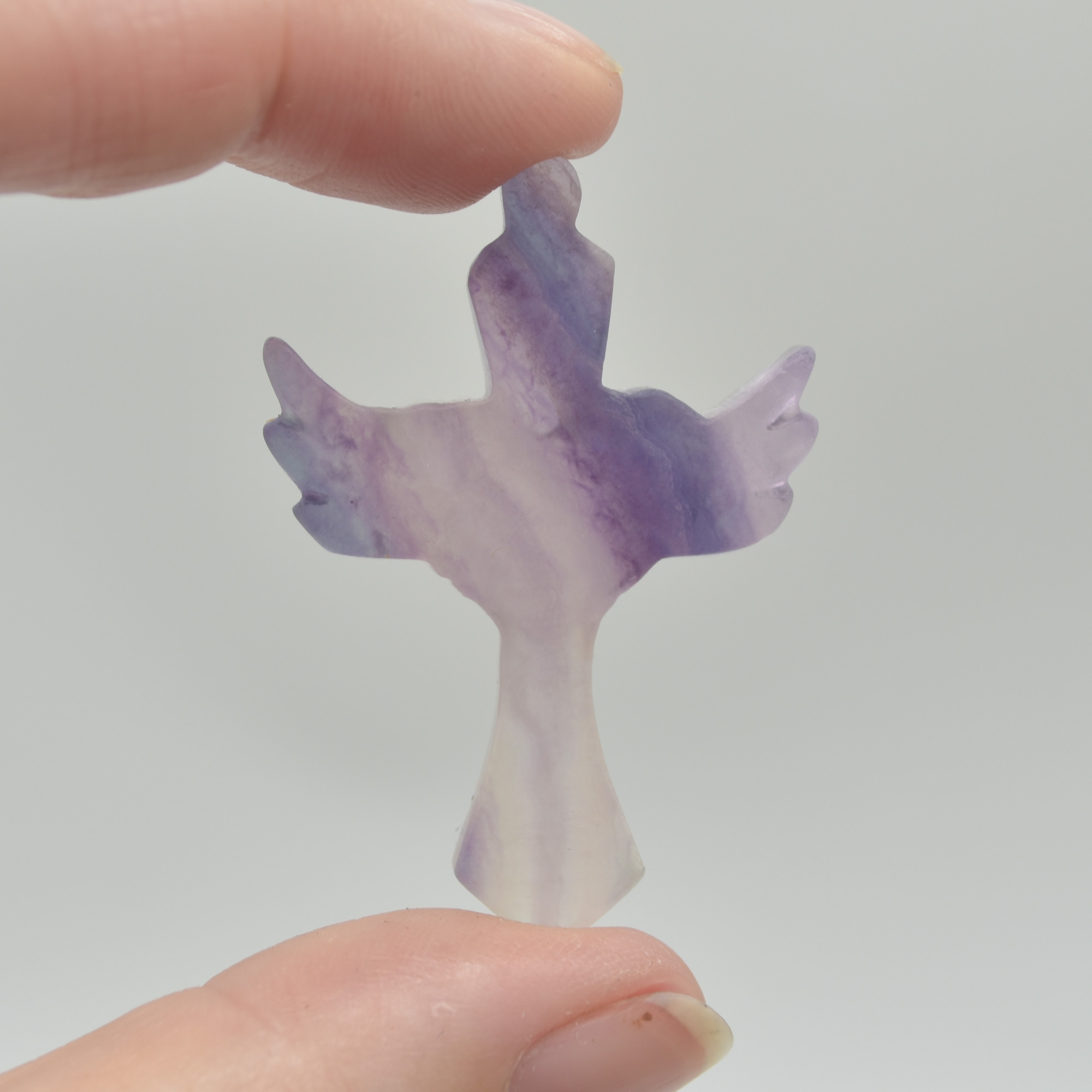 Rainbow Fluorite Crystal Carved Cross With Wings – 4.5cm – #03