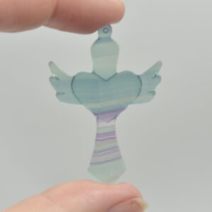 Rainbow Fluorite carved crystal cross with wings and raised centred heart