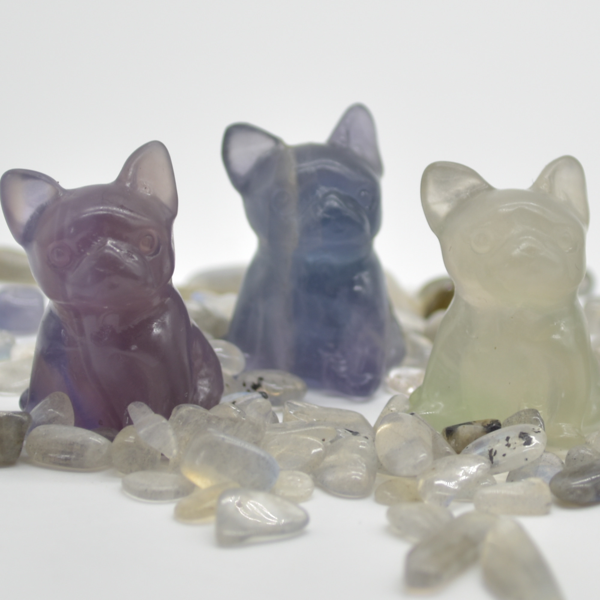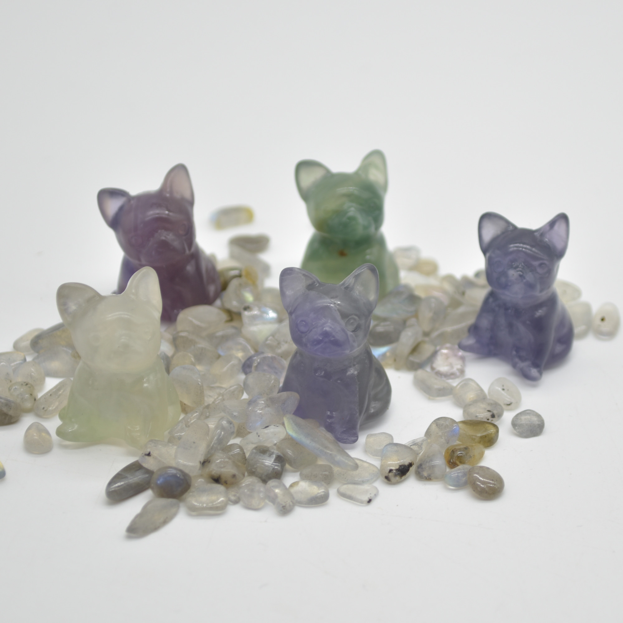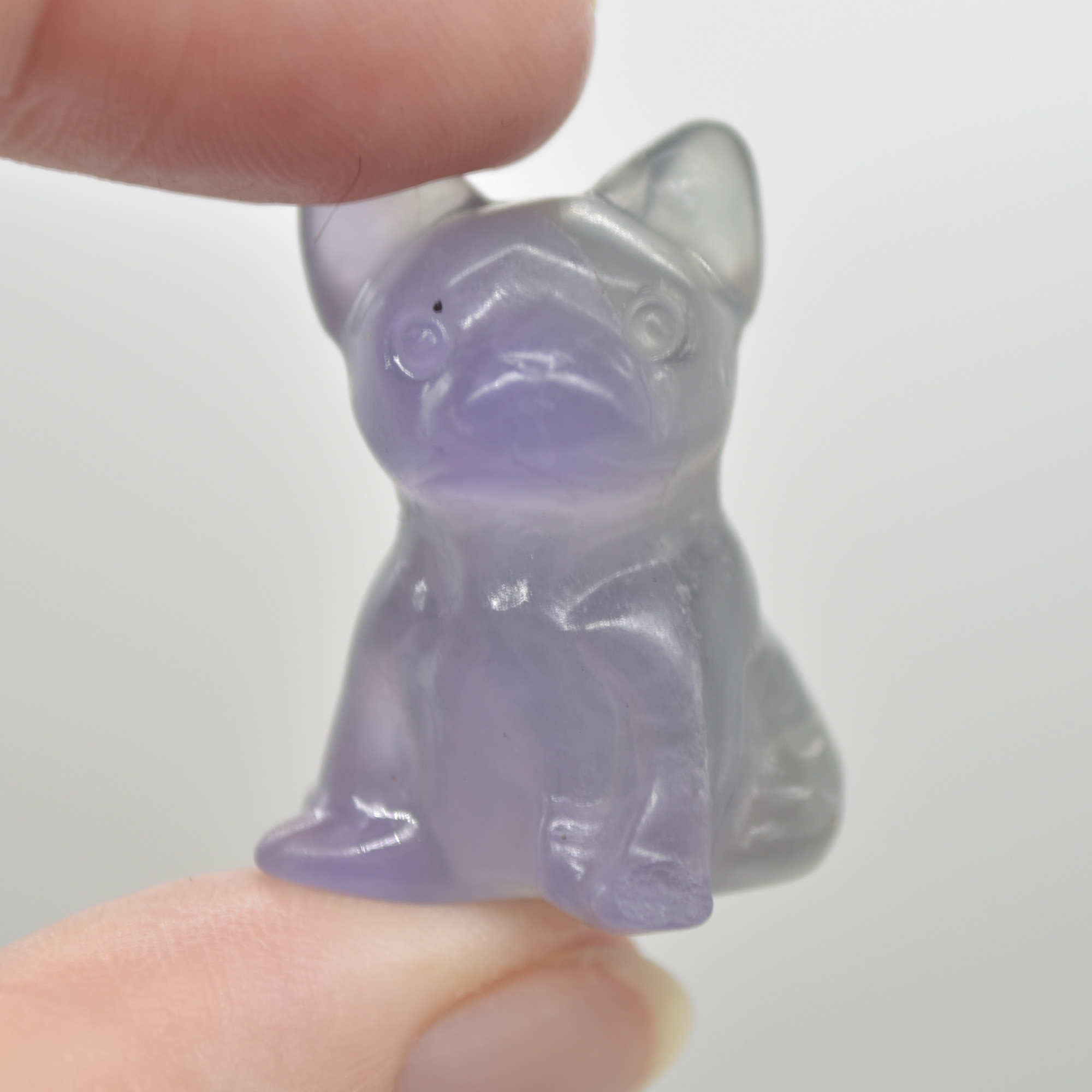 Natural Polished Rainbow Fluorite Semi-precious gemstone Bull Dog carving