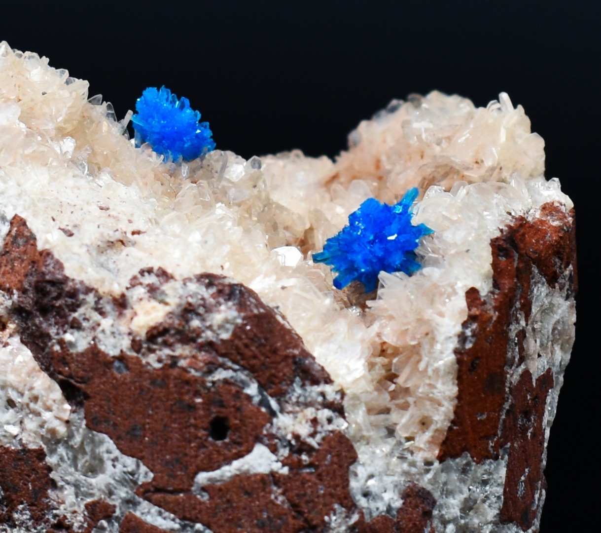Rare minerals specimen featuring both Cavansite and its rare dimorph Pentagonite collected from the famous Wagholi Quarries in Pune Maharashtra India.