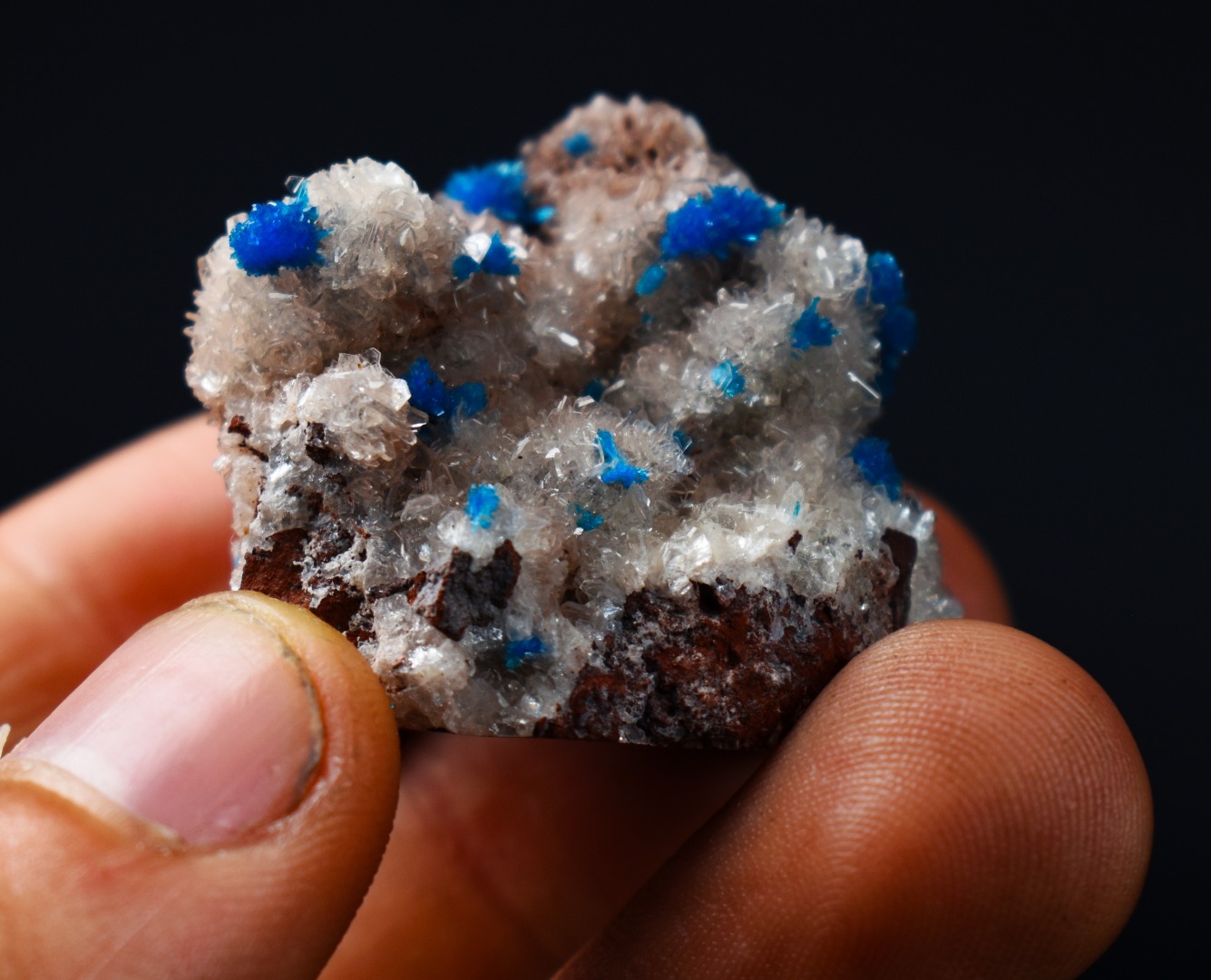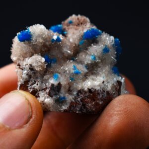 The Wagholi Quarries are renowned for producing some of the world’s finest Cavansite and Pentagonite and specimens from this locale are highly prized for their intensity of colour and crystal sharpness. This is a must-have piece for any serious mineral collector lapidary enthusiast or those seeking a unique naturally vibrant display piece