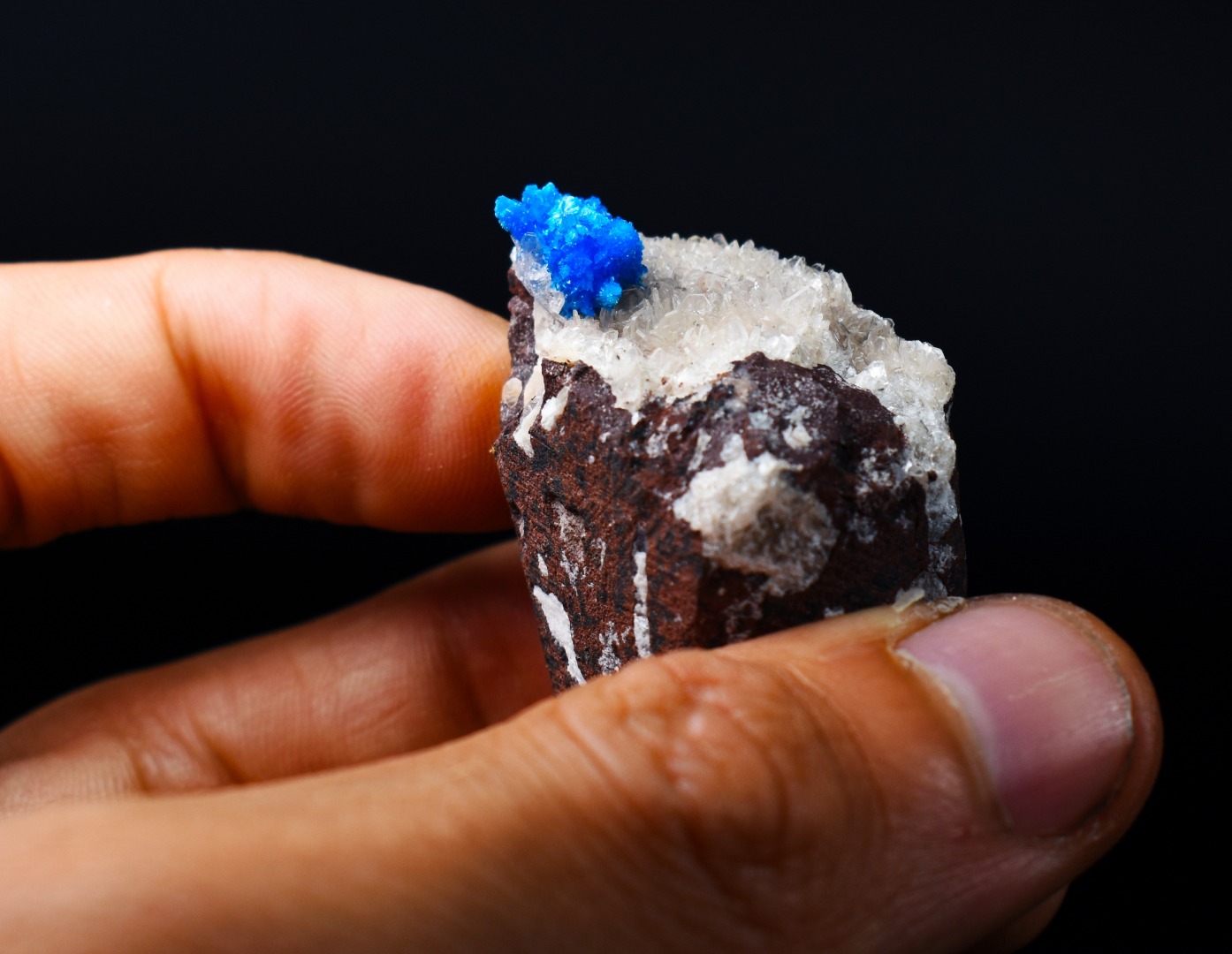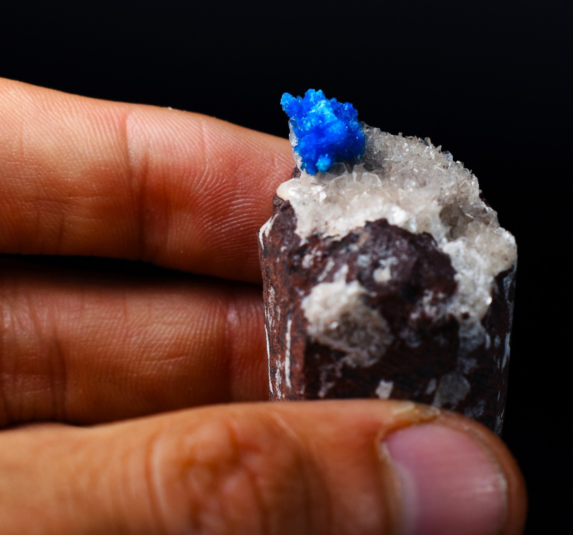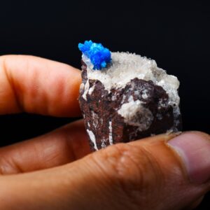 The Wagholi Quarries are renowned for producing some of the world’s finest Cavansite and Pentagonite and specimens from this locale are highly prized for their intensity of colour and crystal sharpness. This is a must-have piece for any serious mineral collector lapidary enthusiast or those seeking a unique naturally vibrant display piece