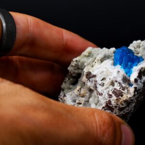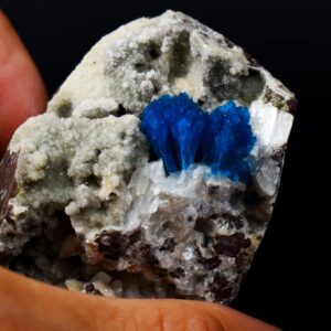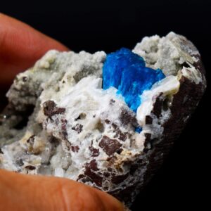 The Wagholi Quarries are renowned for producing some of the world’s finest Cavansite and Pentagonite and specimens from this locale are highly prized for their intensity of colour and crystal sharpness. This is a must-have piece for any serious mineral collector lapidary enthusiast or those seeking a unique naturally vibrant display piece