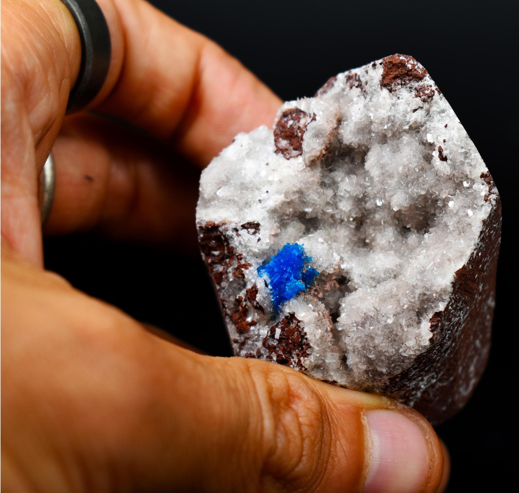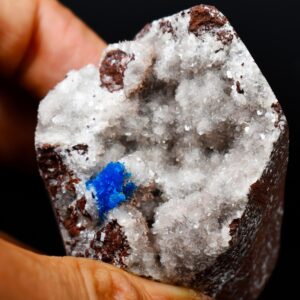 The Wagholi Quarries are renowned for producing some of the world’s finest Cavansite and Pentagonite and specimens from this locale are highly prized for their intensity of colour and crystal sharpness. This is a must-have piece for any serious mineral collector lapidary enthusiast or those seeking a unique naturally vibrant display piece