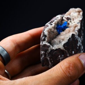 The Wagholi Quarries are renowned for producing some of the world’s finest Cavansite and Pentagonite and specimens from this locale are highly prized for their intensity of colour and crystal sharpness. This is a must-have piece for any serious mineral collector lapidary enthusiast or those seeking a unique naturally vibrant display piece