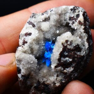 The Wagholi Quarries are renowned for producing some of the world’s finest Cavansite and Pentagonite and specimens from this locale are highly prized for their intensity of colour and crystal sharpness. This is a must-have piece for any serious mineral collector lapidary enthusiast or those seeking a unique naturally vibrant display piece