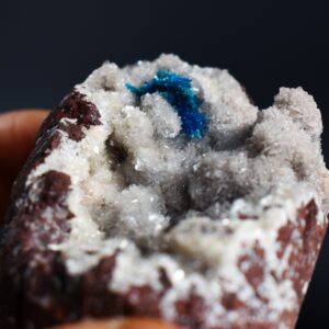 The Wagholi Quarries are renowned for producing some of the world’s finest Cavansite and Pentagonite and specimens from this locale are highly prized for their intensity of colour and crystal sharpness. This is a must-have piece for any serious mineral collector lapidary enthusiast or those seeking a unique naturally vibrant display piece