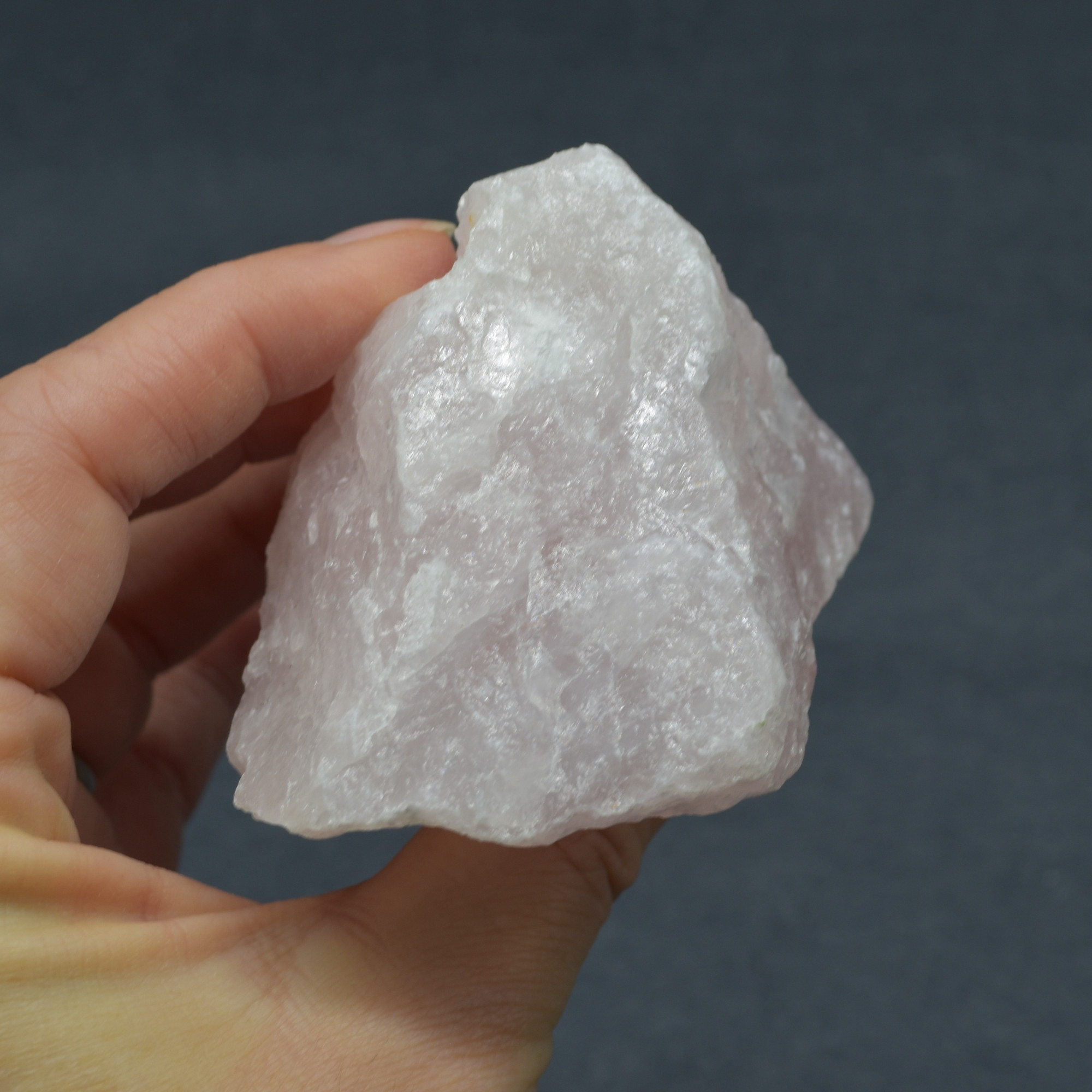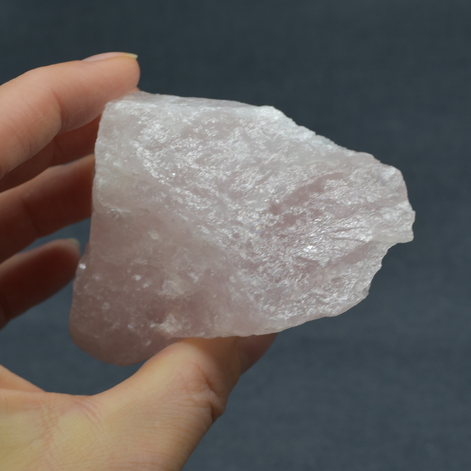 These are carved from natural stone so are not flawless. All natural markings and inclusions are visible. The colour of these crystals is a pale pink colour with some parts almost white. We have tried to show the true colour as best as possible in the photos and video.