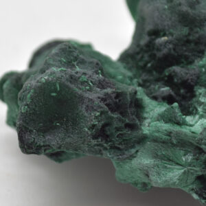 Malachite which we commonly see today often has bands or stripes of dark and light green. It can be polished into small tumble stones, but you also get something called “velvet malachite,” which features tiny needle like formations and crystallization which is rare to find.