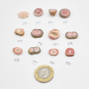 Rhodochrosite Stalactite Slices from Argentina – Lot 2 – 12 options