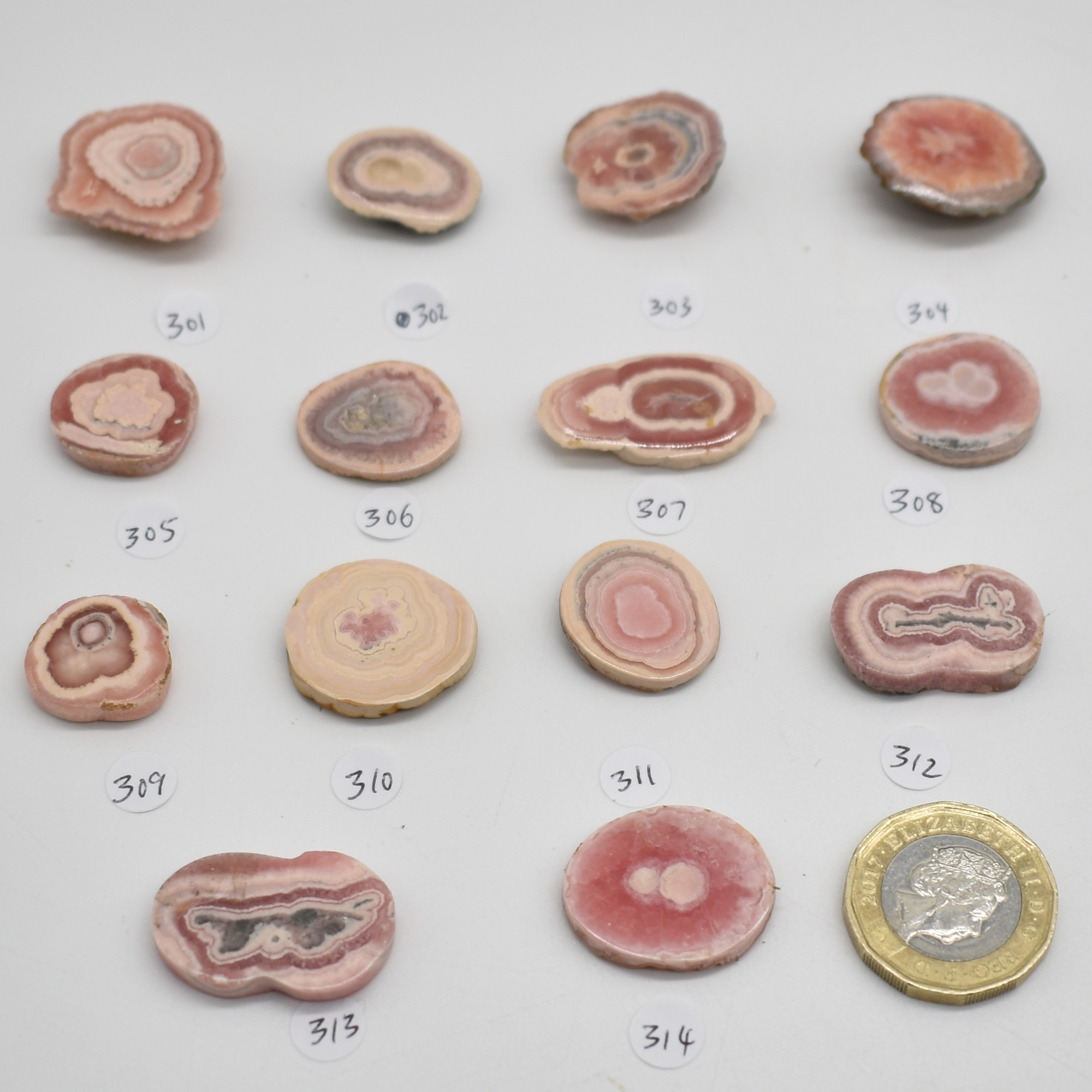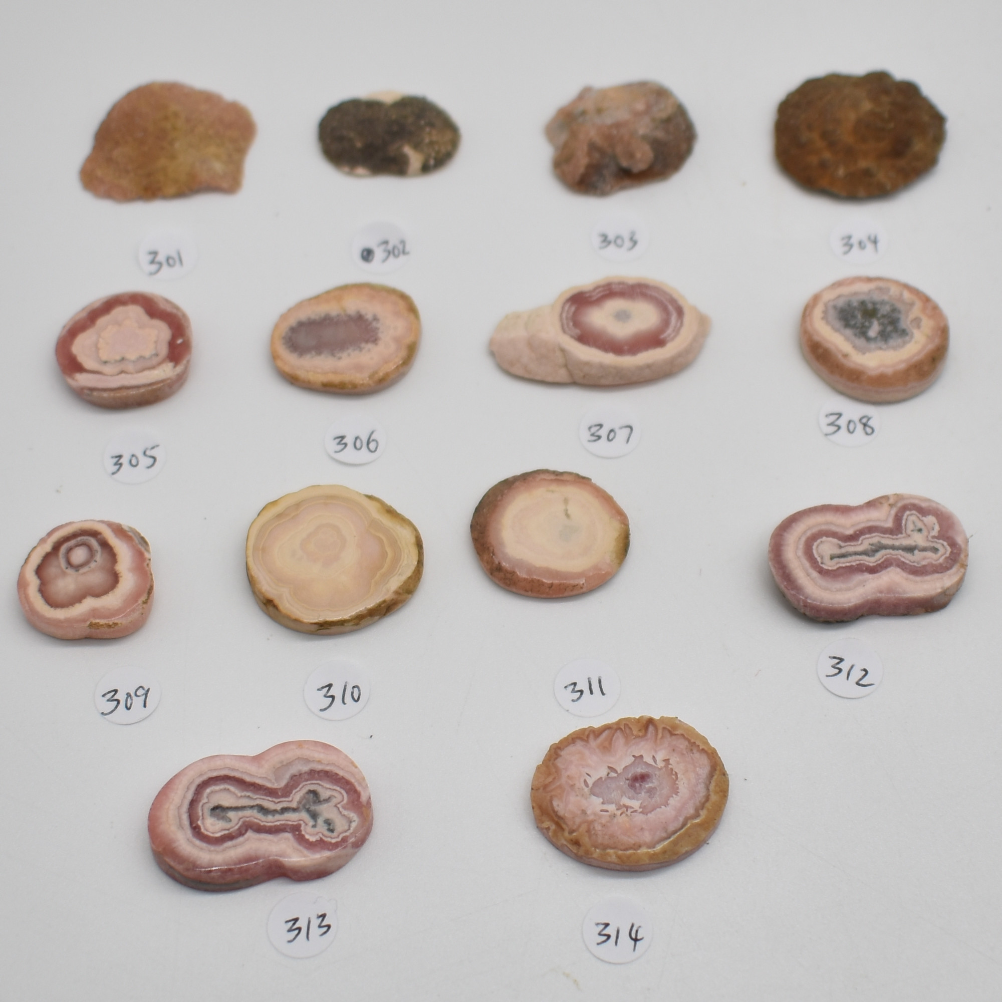 Rhodochrosite Stalactite Slices from Argentina – Lot 3 – 14 options