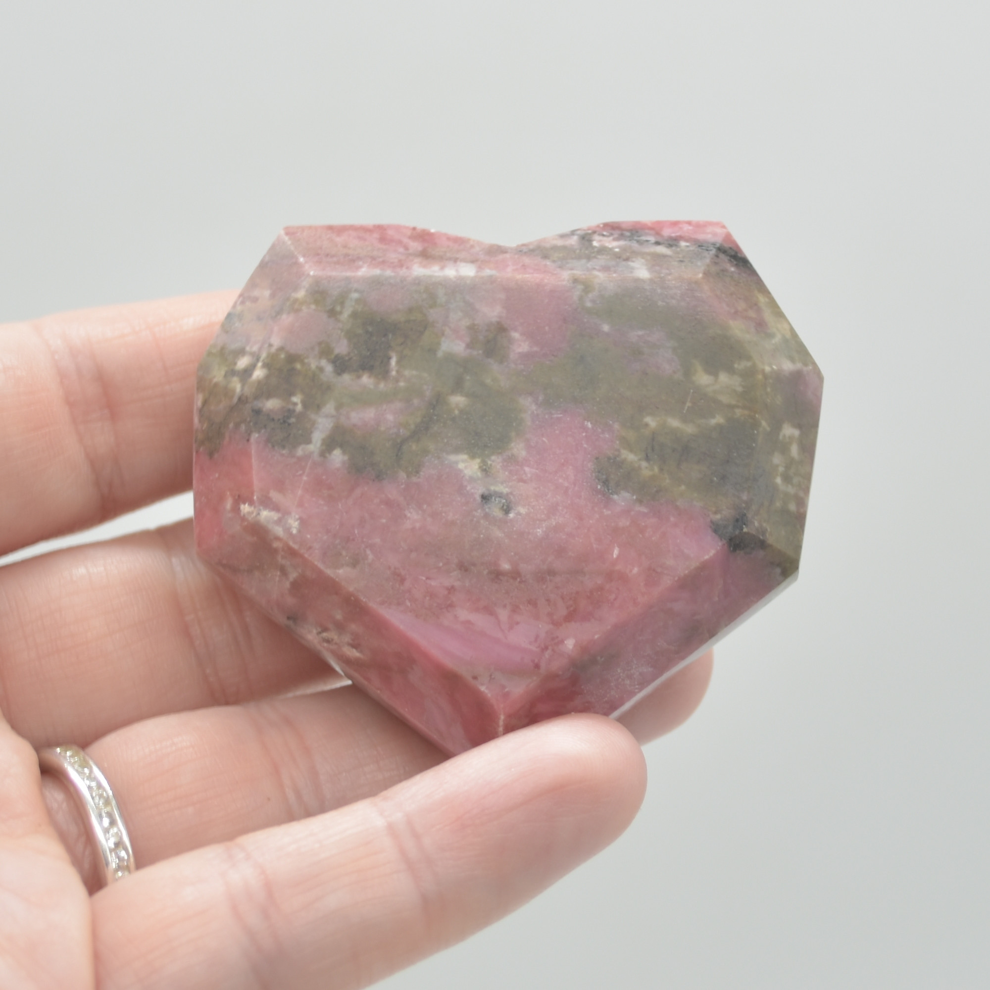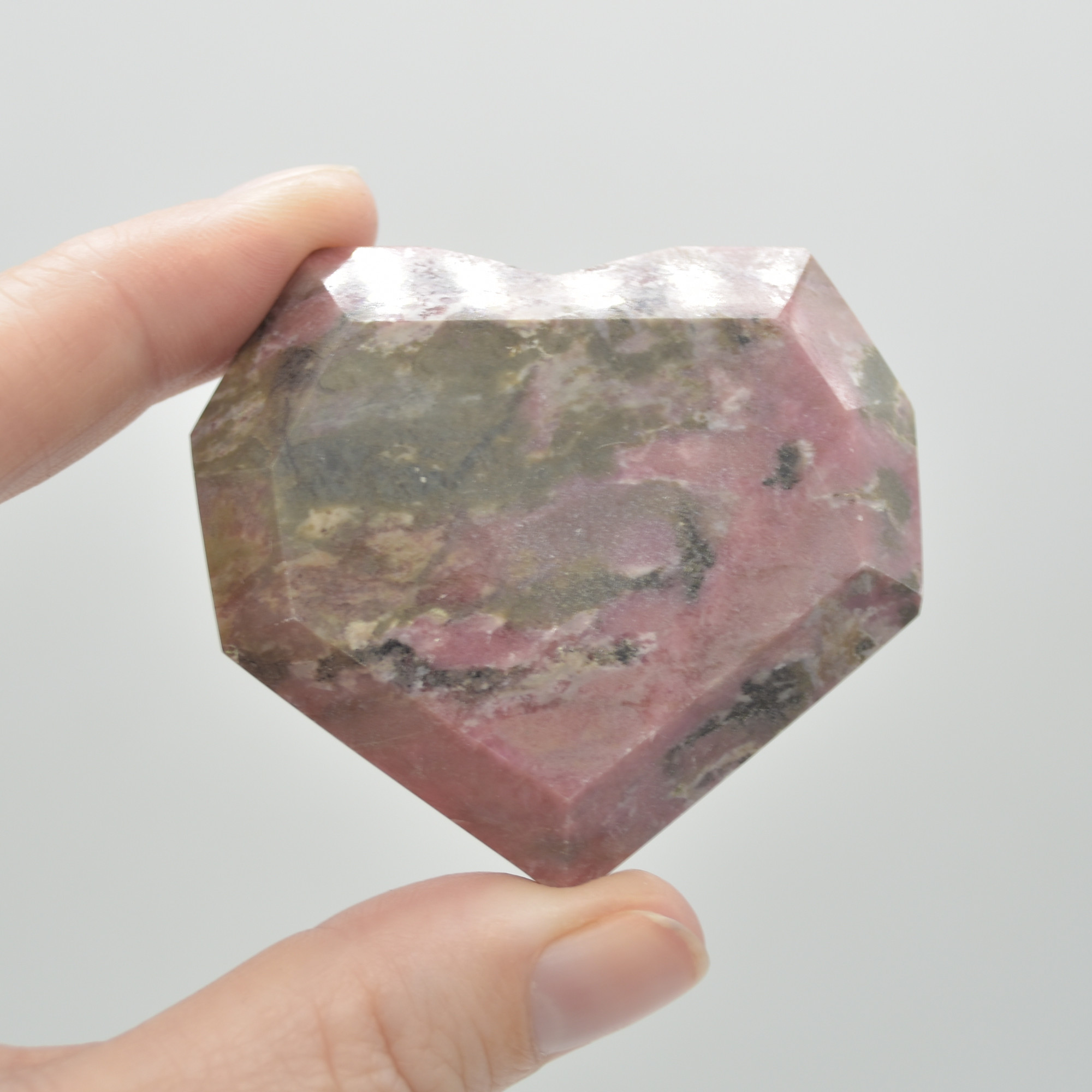 Rhodonite Gemstone Faceted Heart – 5cm #12