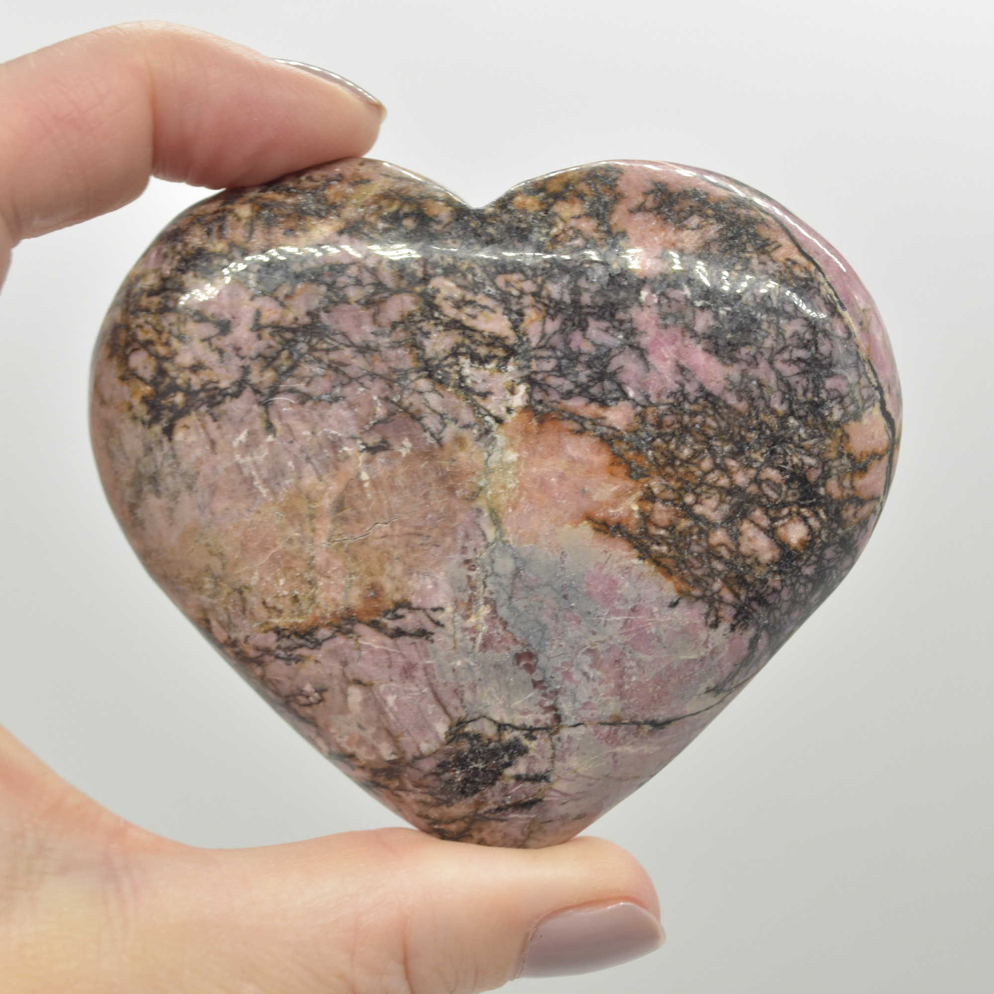 Polished Rhodonite Crystal Puffy Heart