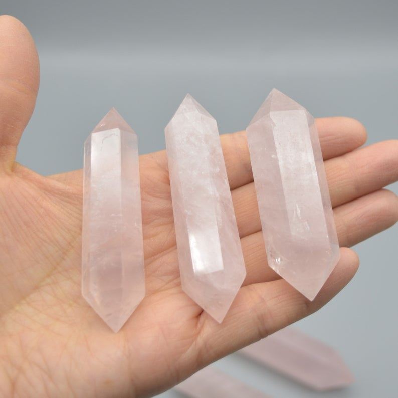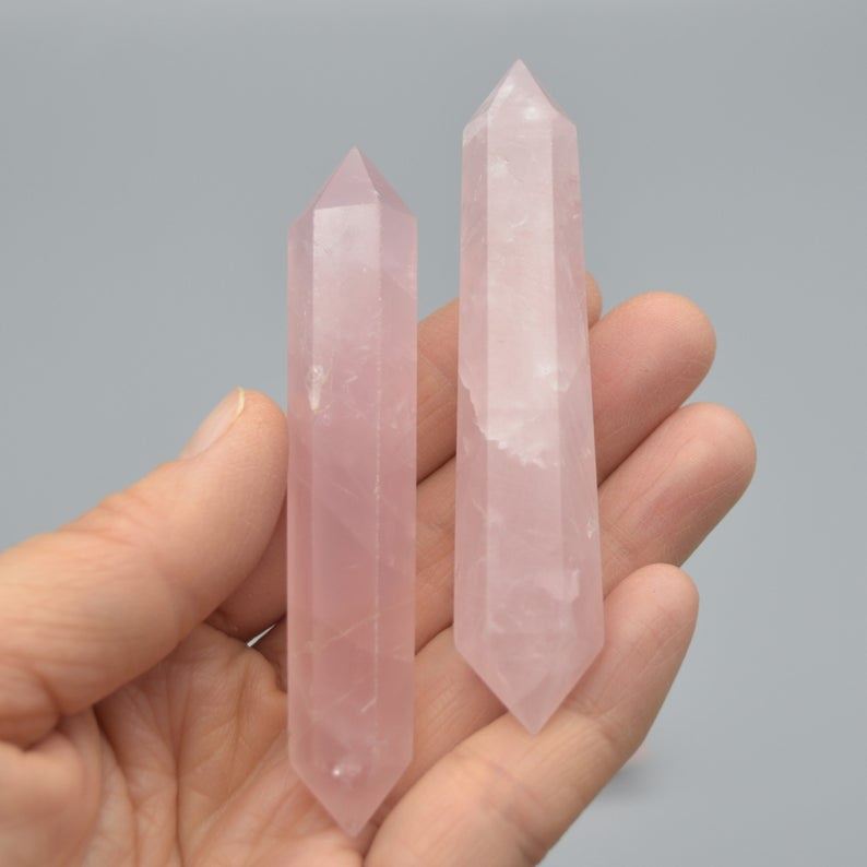 Rose Quartz Double Terminated Crystal Point / Tower / Wand – 1 Count – choose from 4 sizes