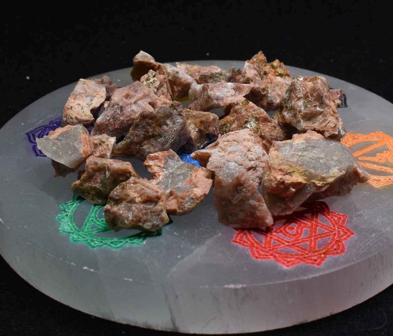 - Selenite Plate is NOT included and sold separately. For display purposes only.