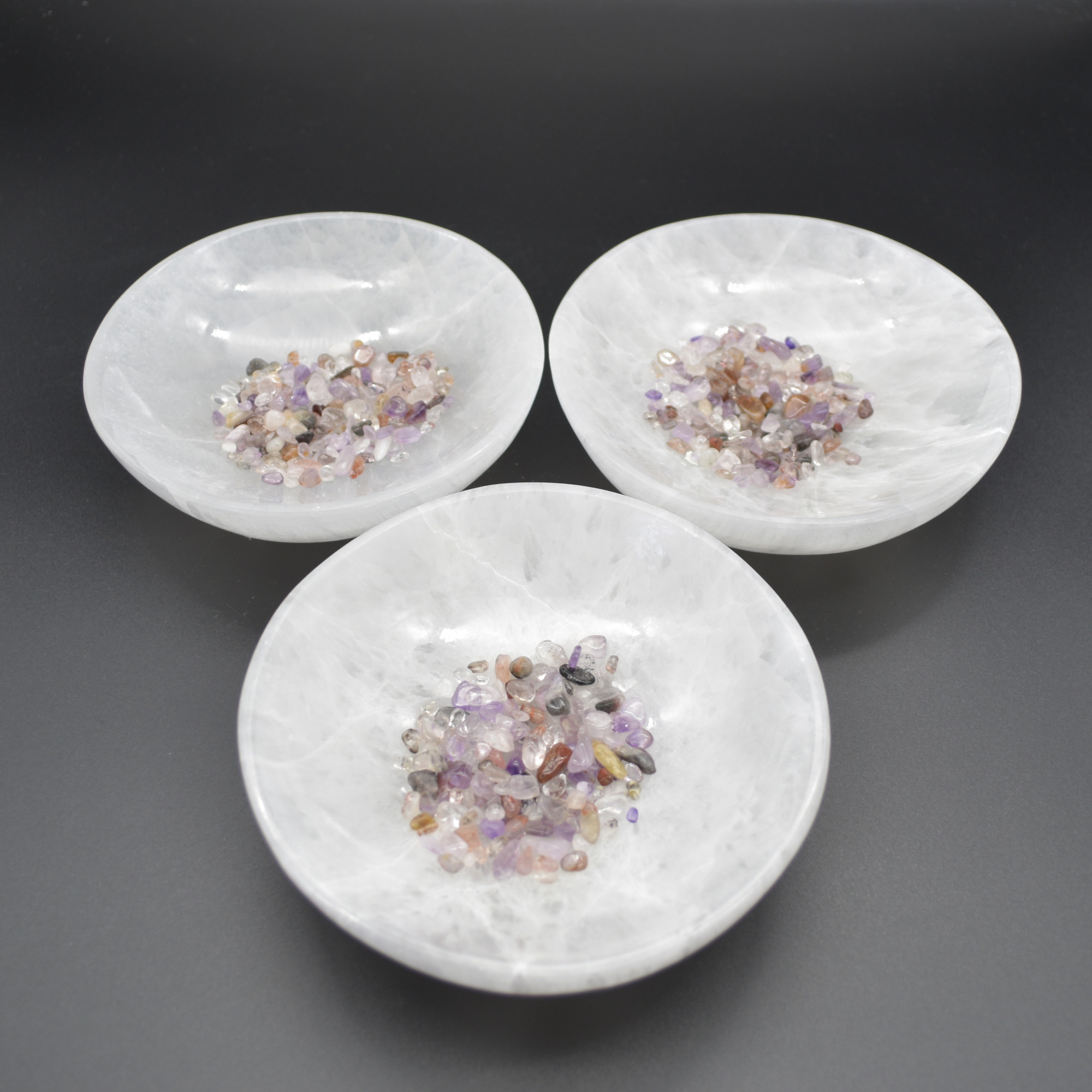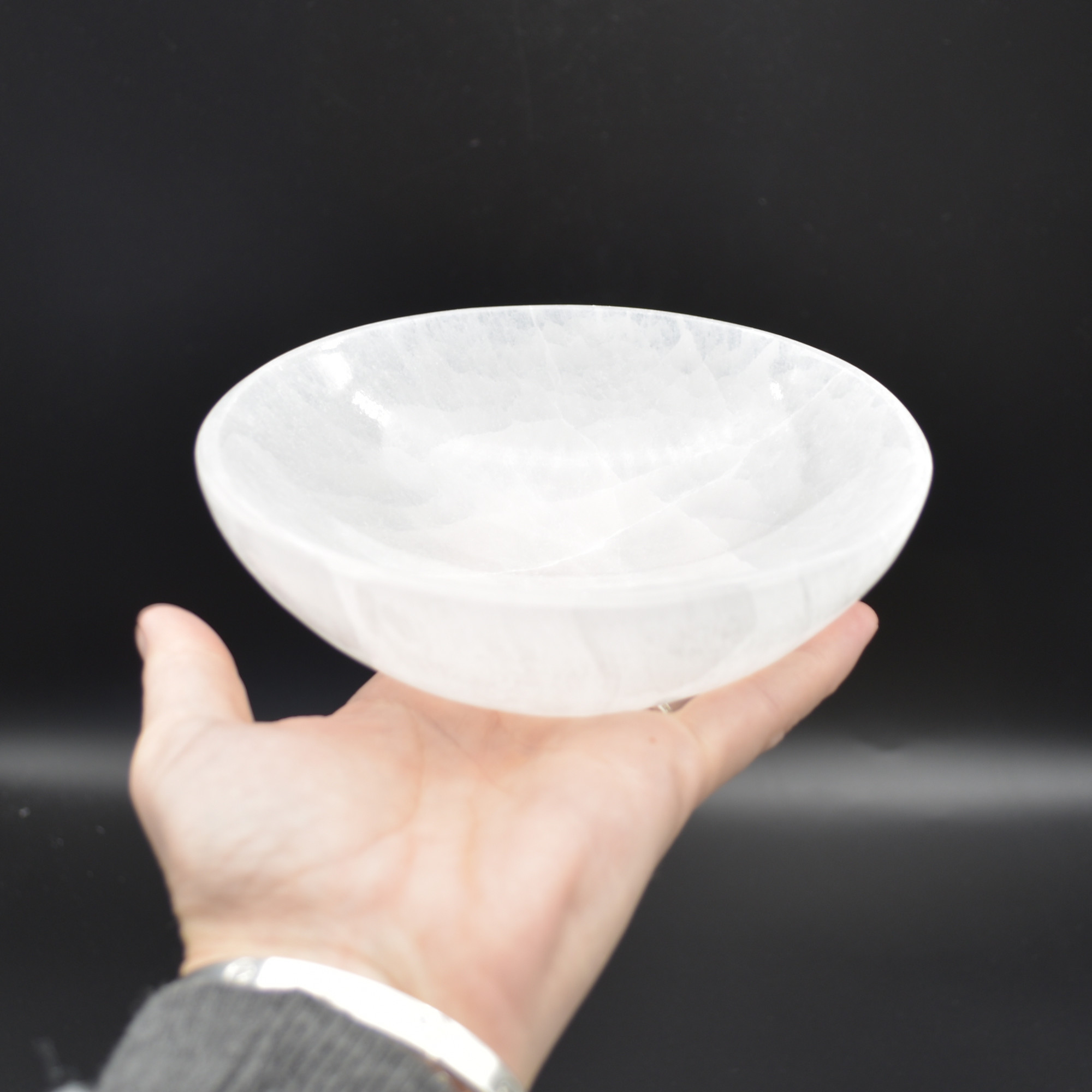 Quantity: 1 Satin Spar bowl in total, will be randomly hand picked and packed for you, each single piece is beautiful with its own unique colour and markings.