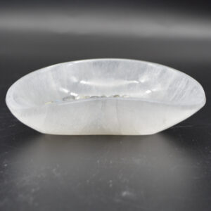 These bowls are made from white fibrous Satin Spar which is a variety of Gypsum. The stone is often called Selenite, although the two are closely related (they are both forms of Gypsum), Selenite actually grows in large clear crystal forms. Satin Spar is a very delicate stone and can easily scratch and mark and should be handled with care.