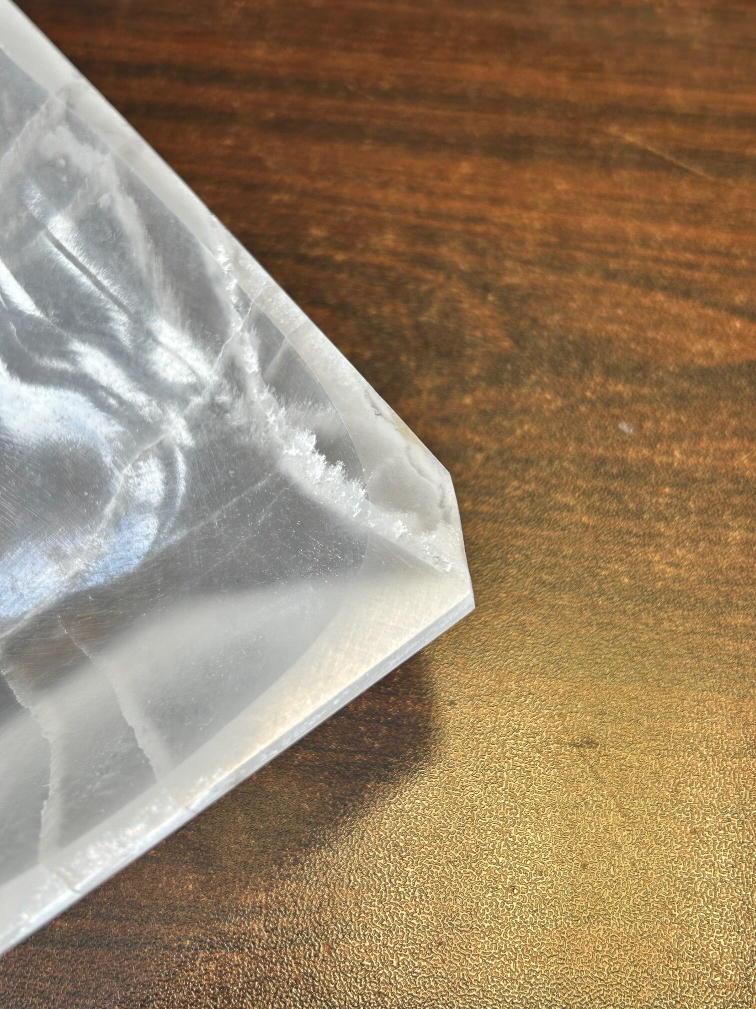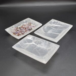 - Natural Polished Selenite (Satin Spar) Semi-precious Gemstone Rectangular shaped Crystal Charging bowl