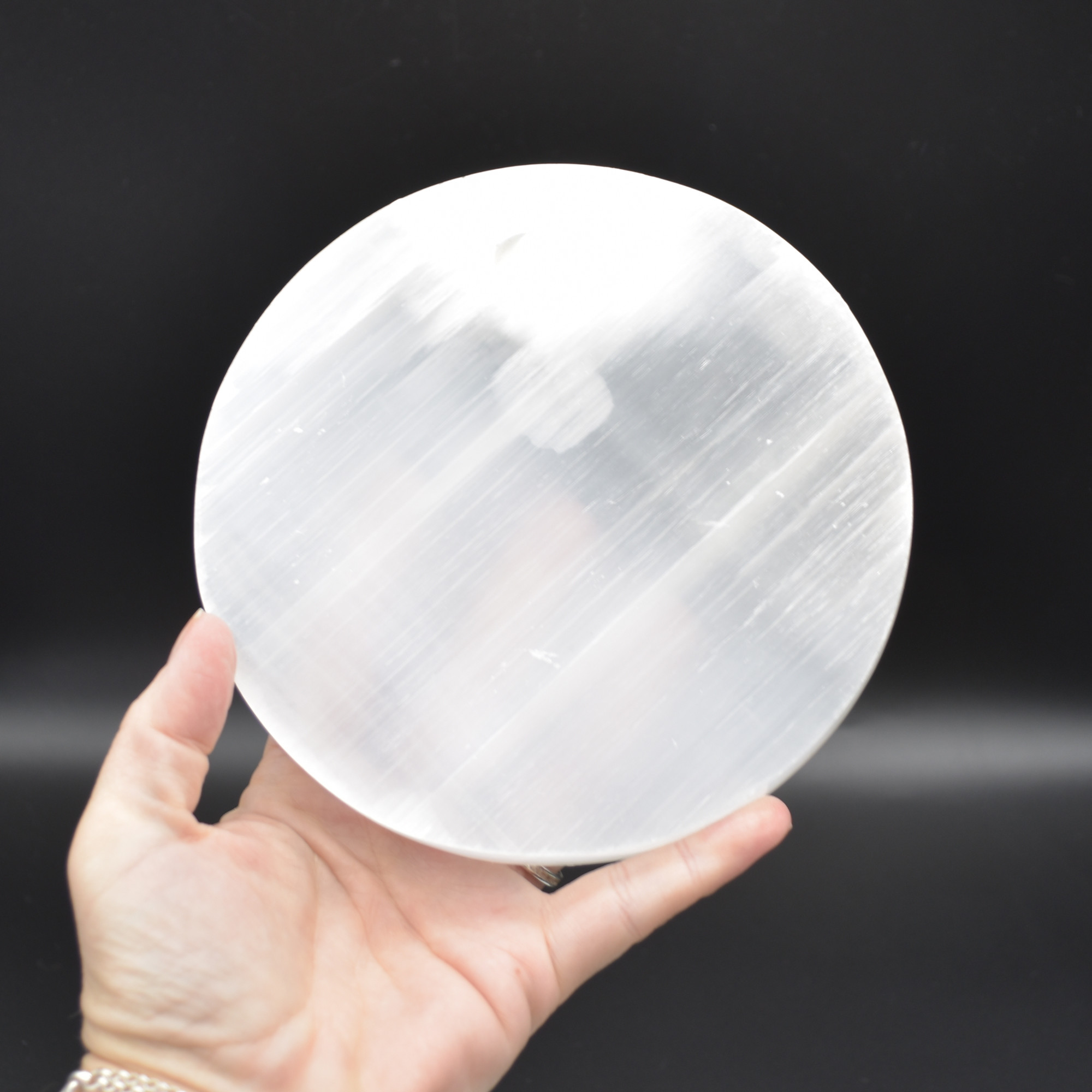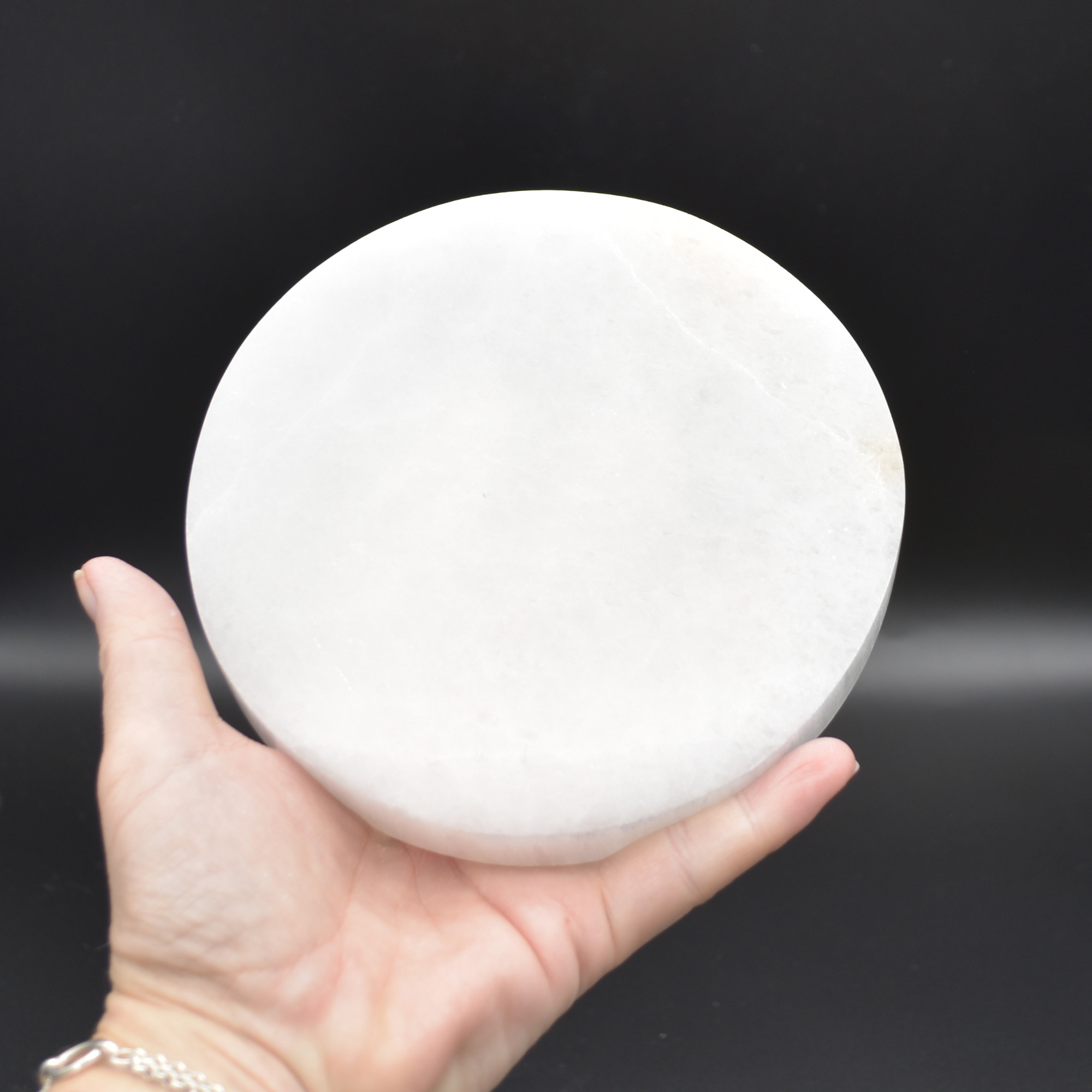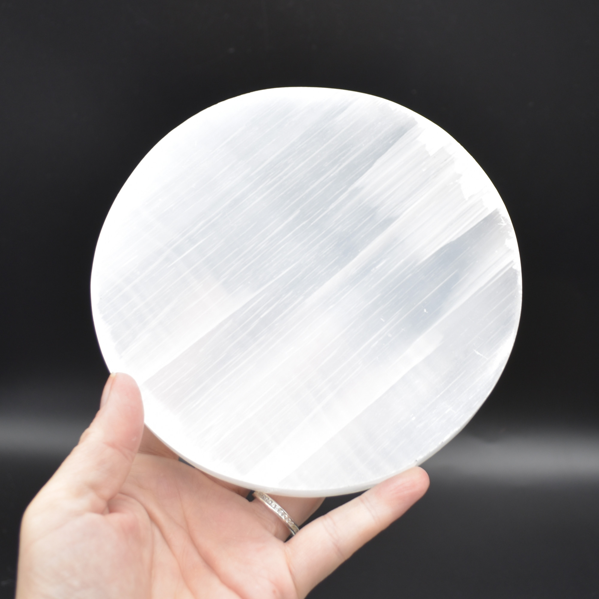 Natural Polished Satin Spar (Selenite) Carved Semi-precious Gemstone Round Charging Plate