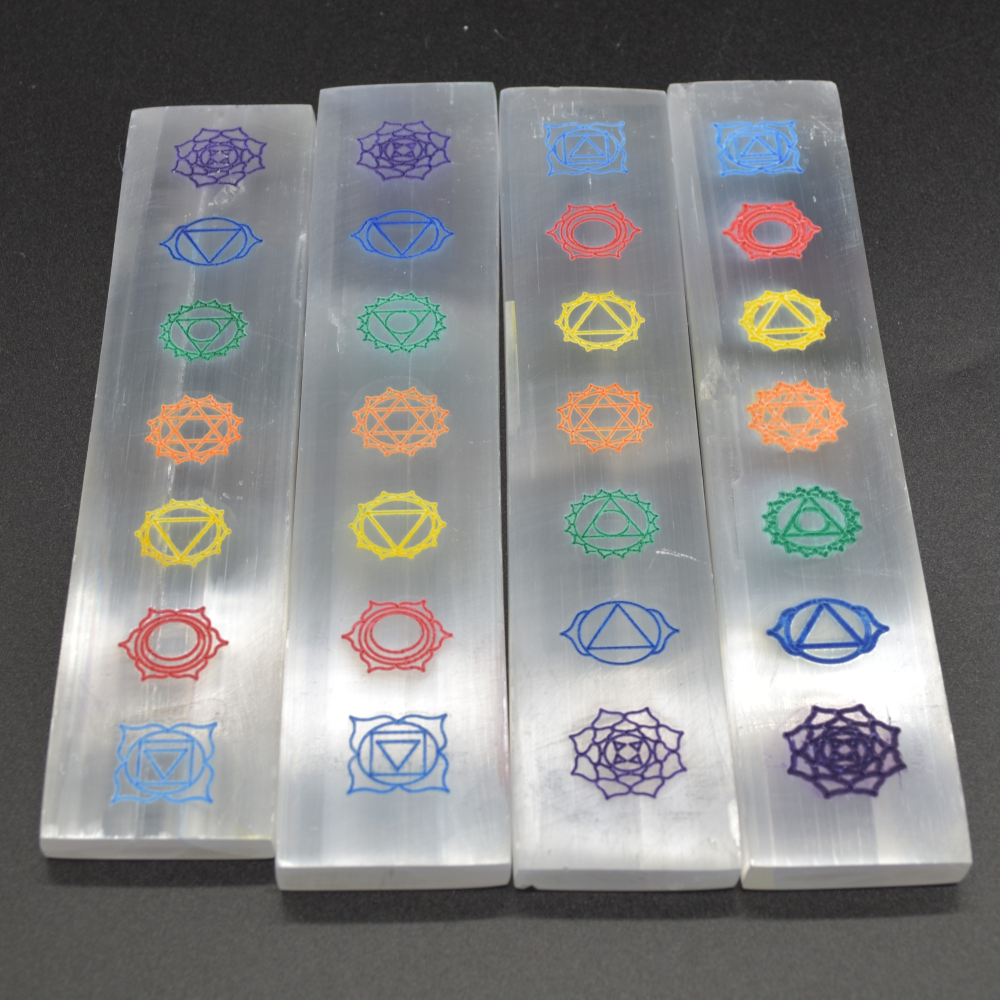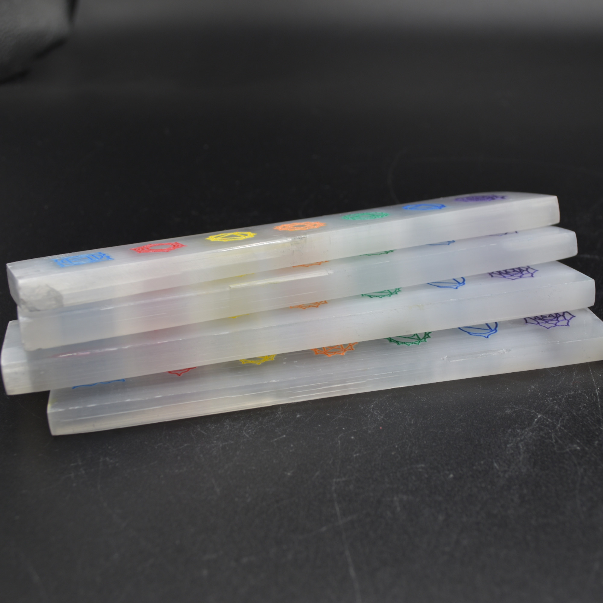 Natural Polished Satin Spar (Selenite) Carved Semi-precious Gemstone Rectangular Chakra Charging Plates