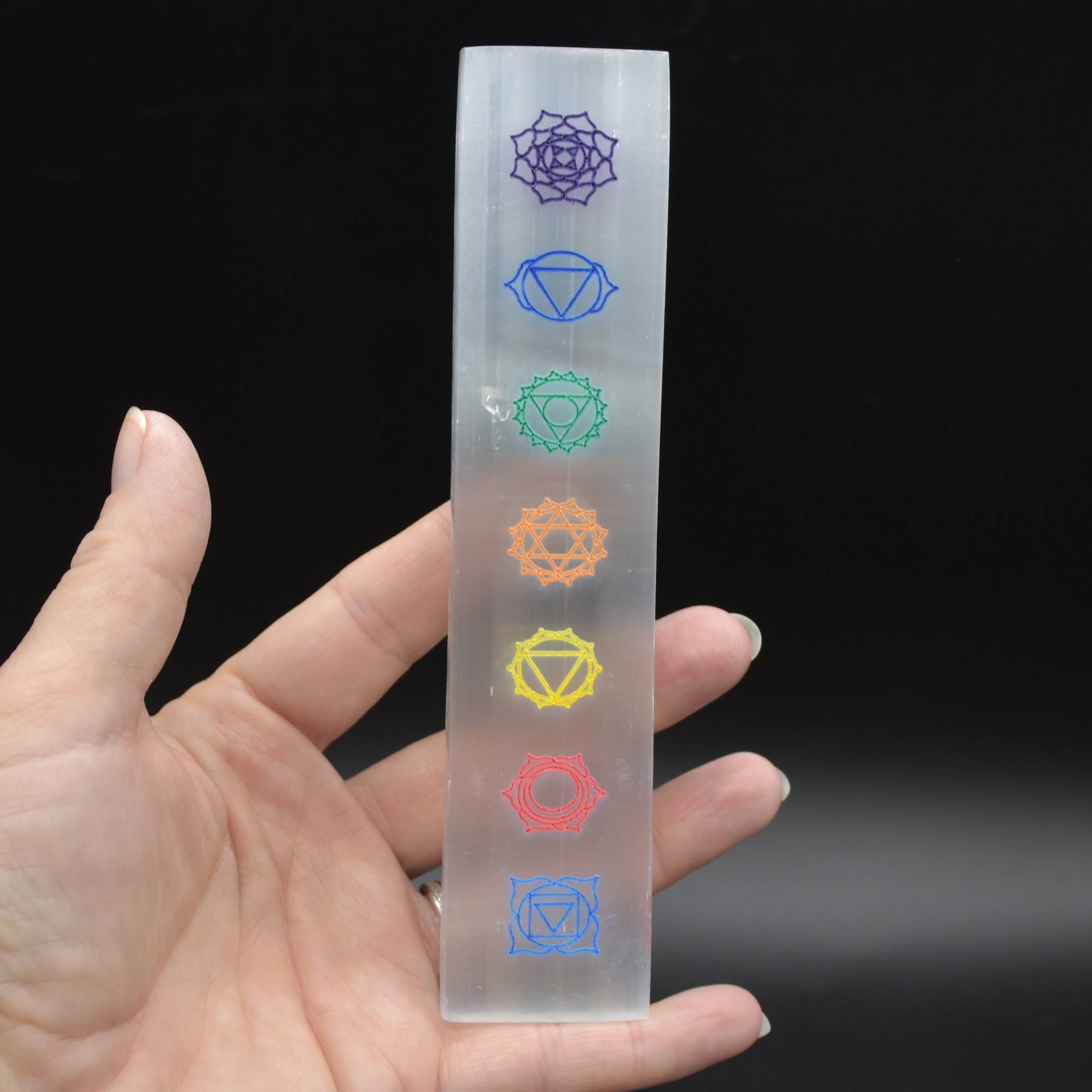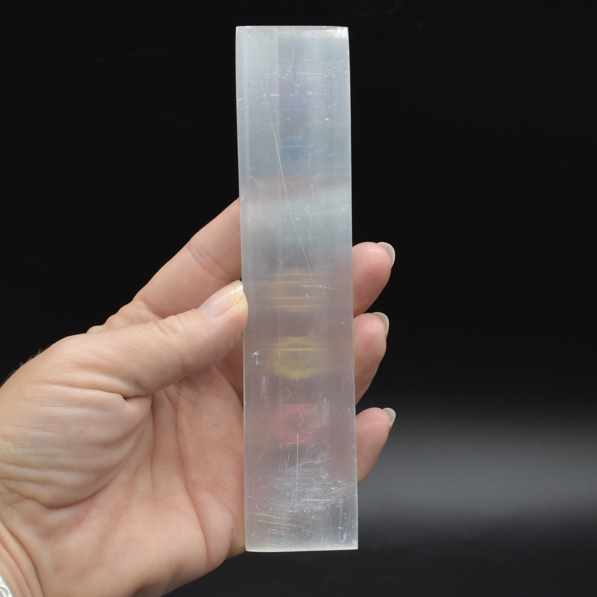 Selenite (Satin Spar) Chakra Rectangular Charging Plate – 15cm – 1 Count
