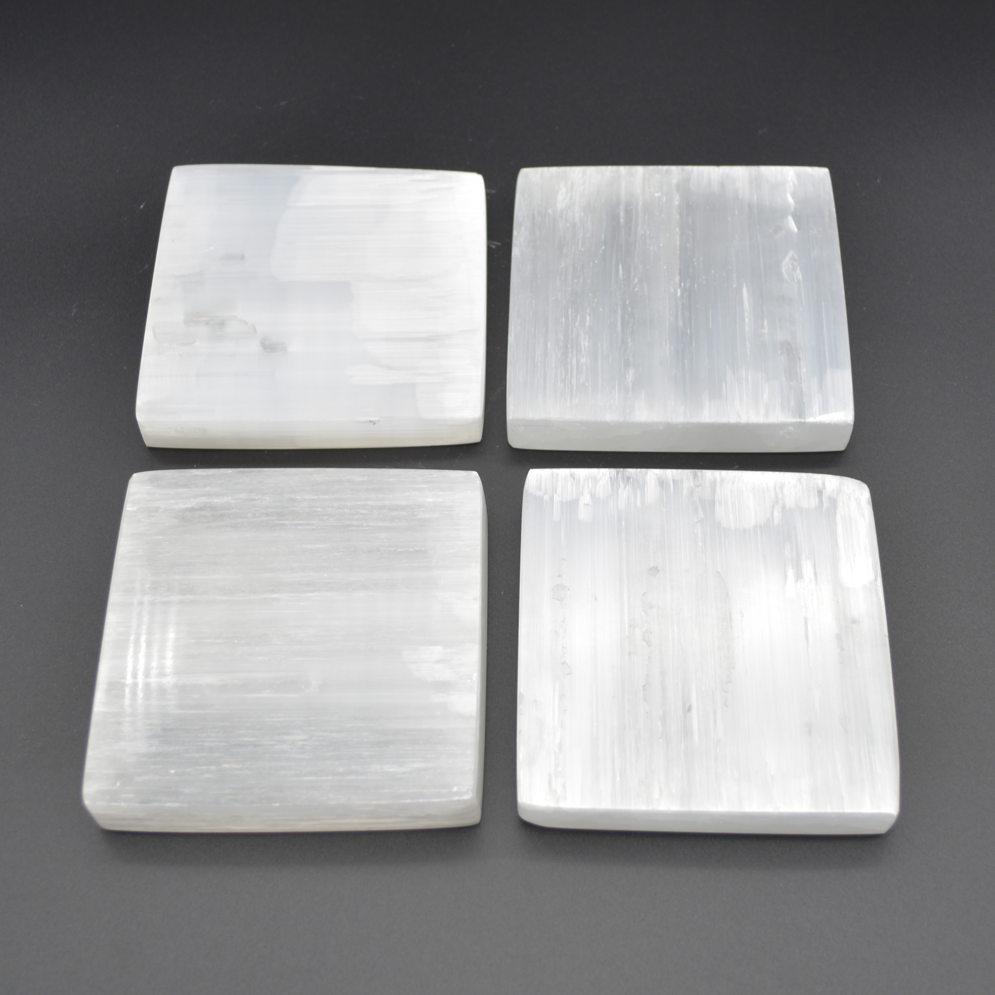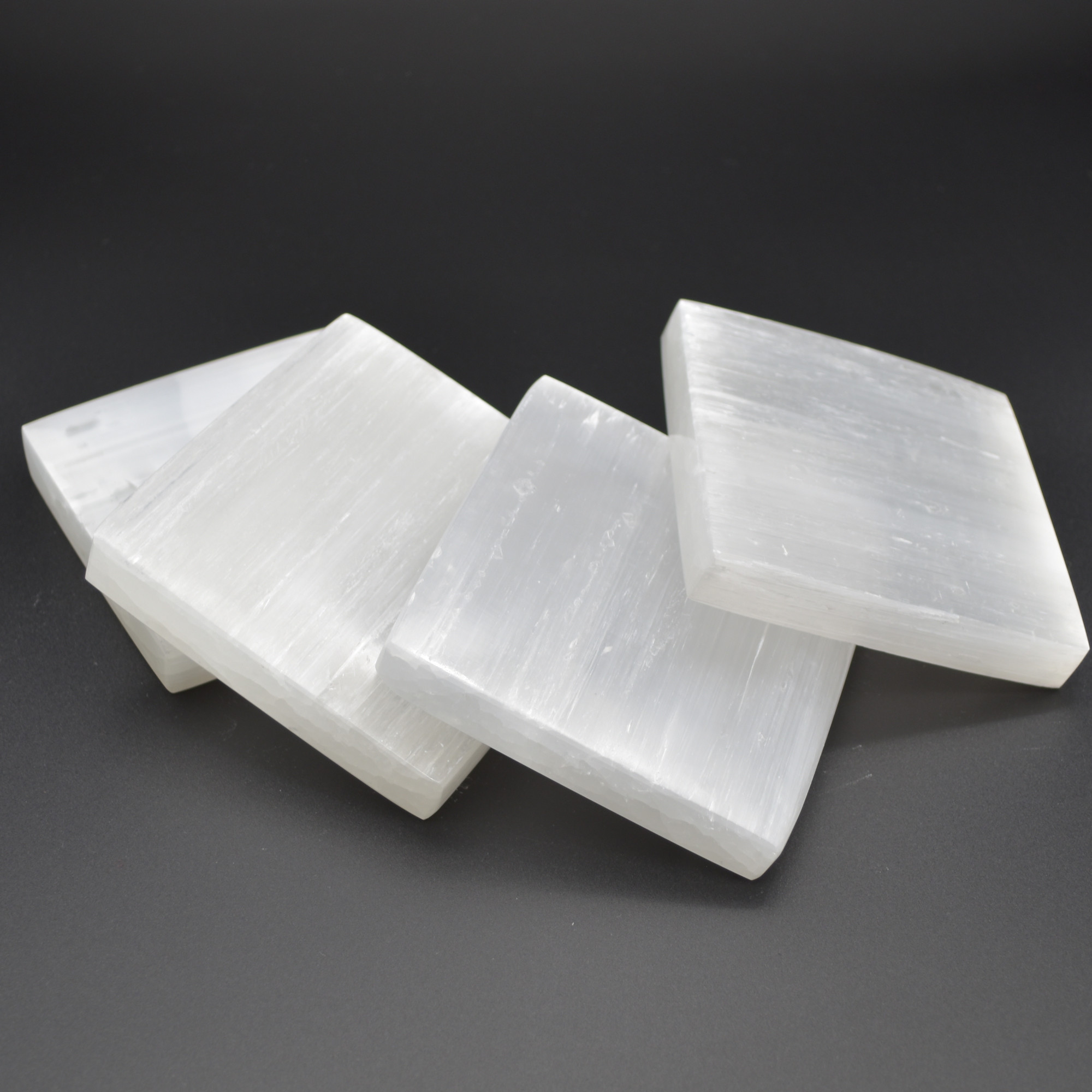 Natural Polished Satin Spar (Selenite) Carved Semi-precious Gemstone Square Plate