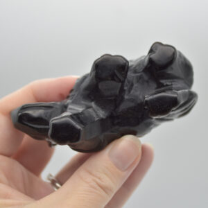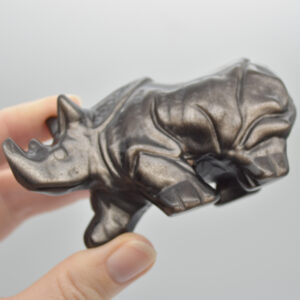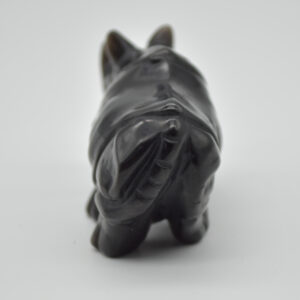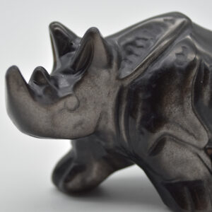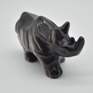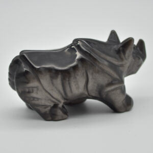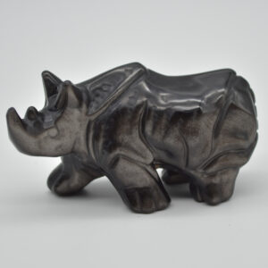 Silver Sheen Obsidian Gemstone Carved Rhino – 4.5cm x 8.5cm x 3cm #01