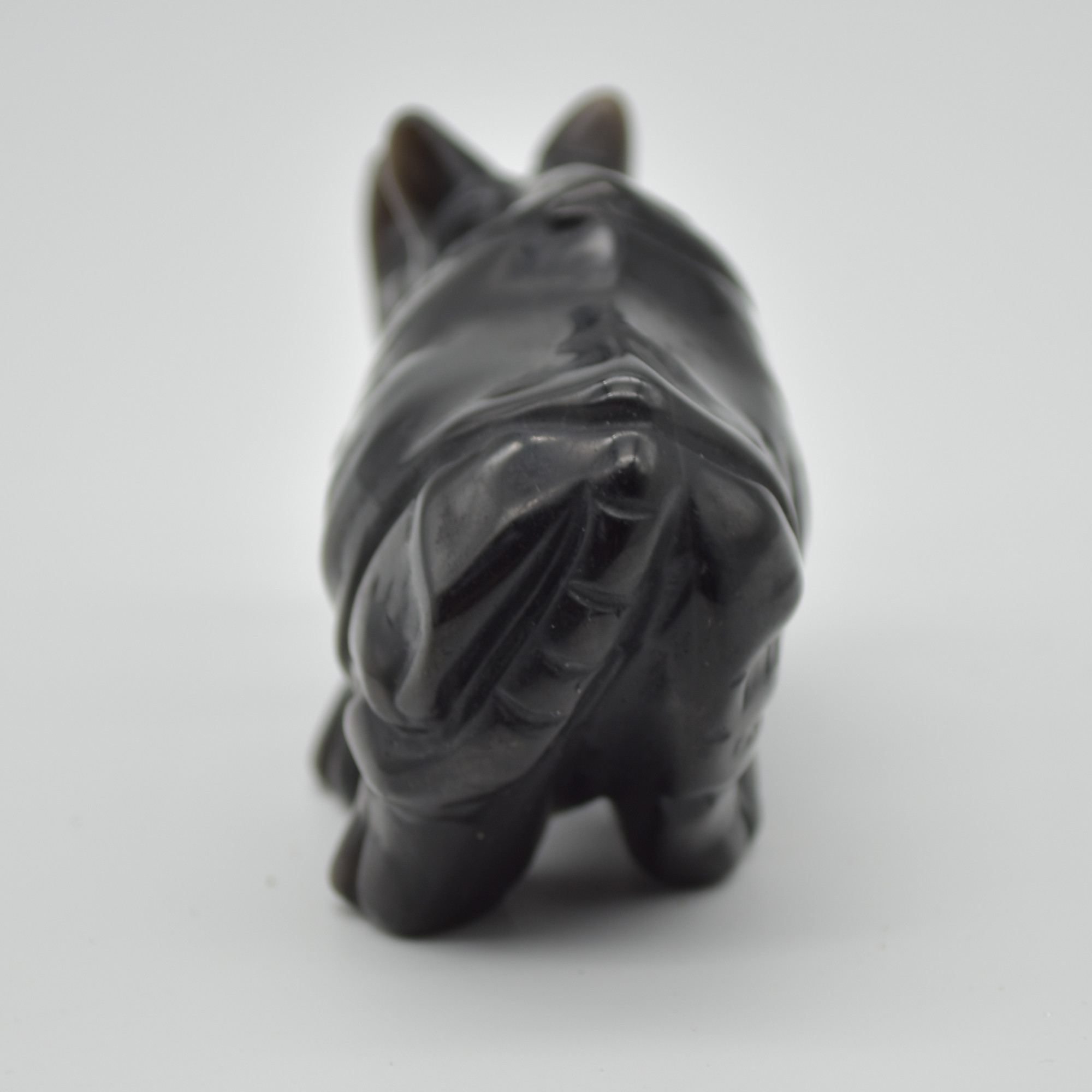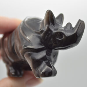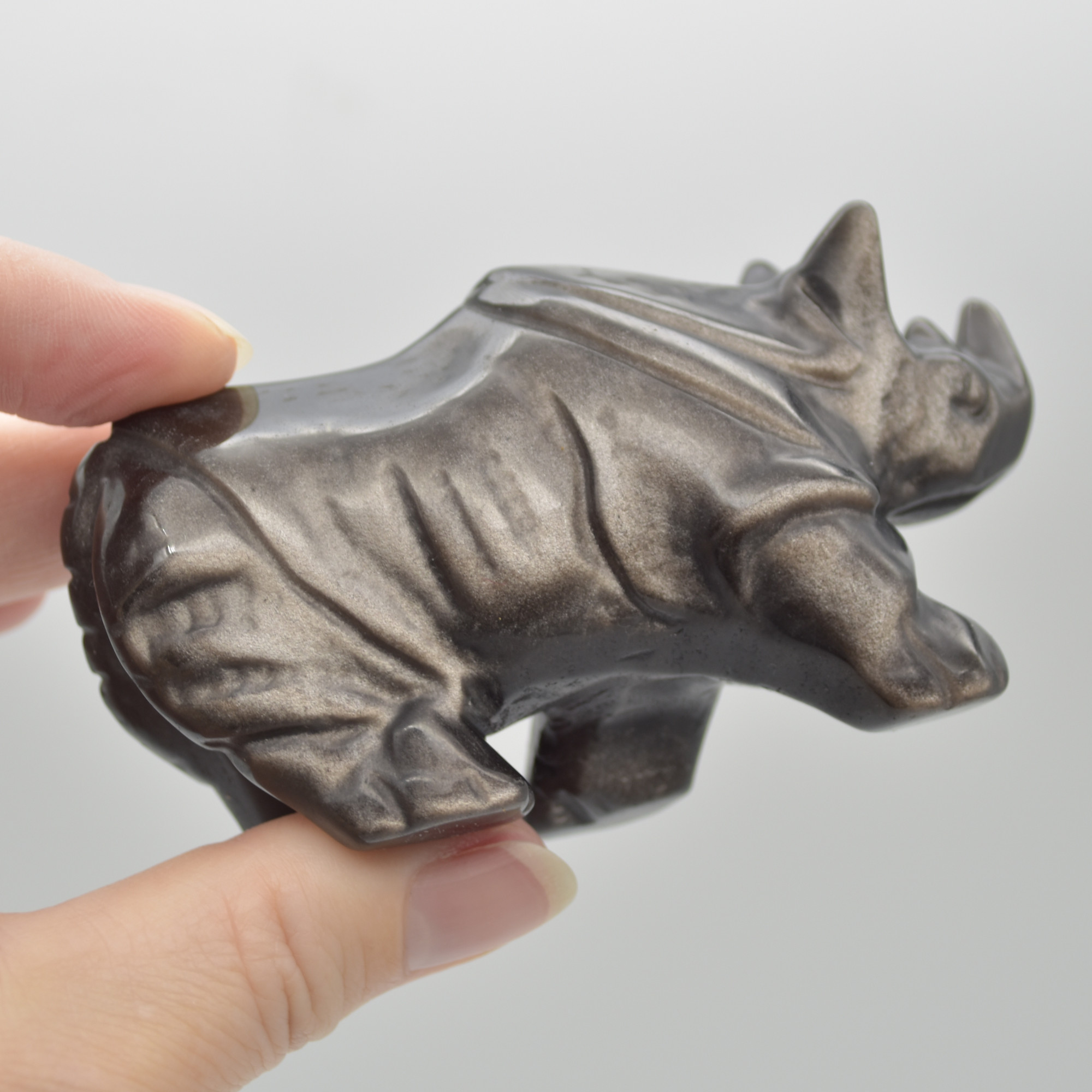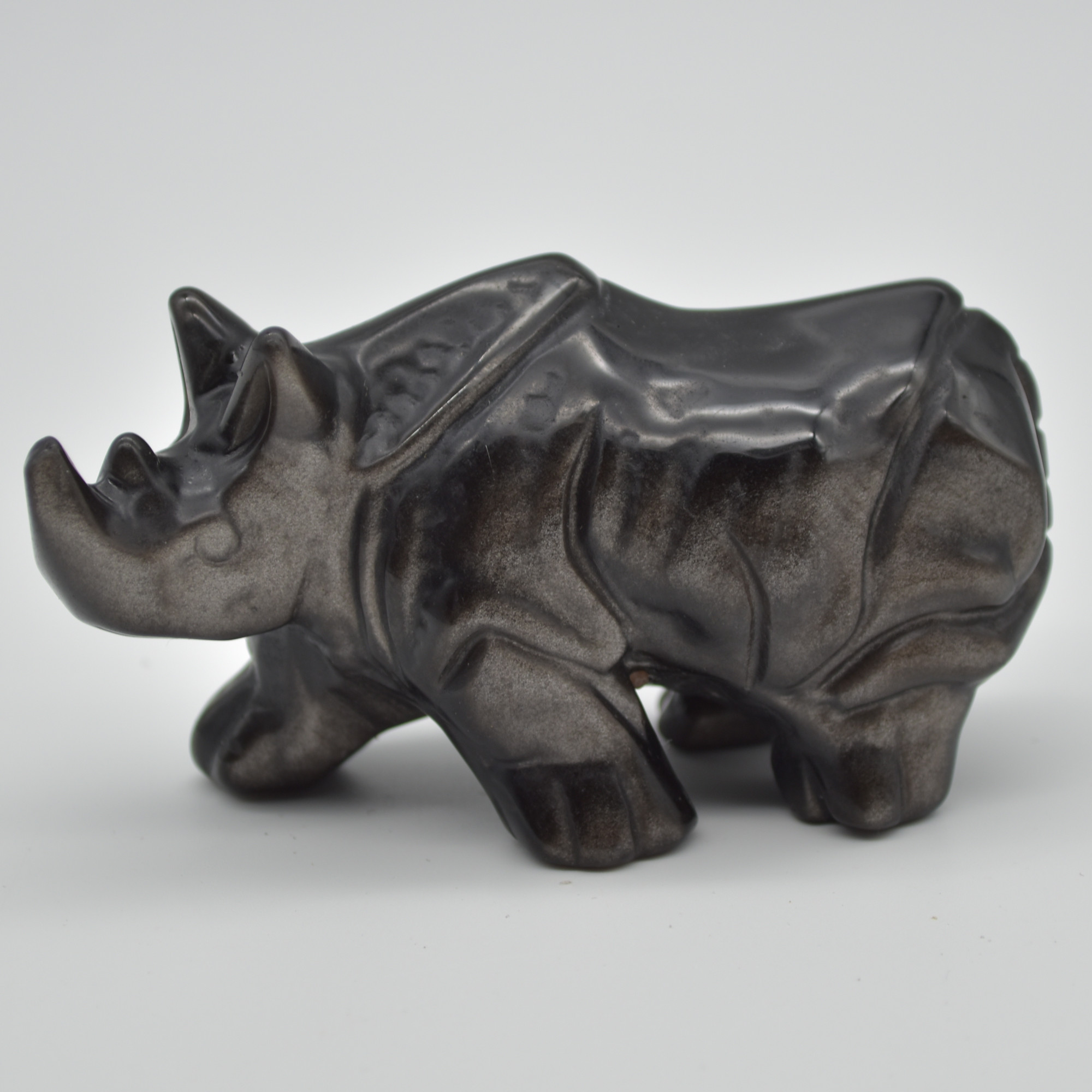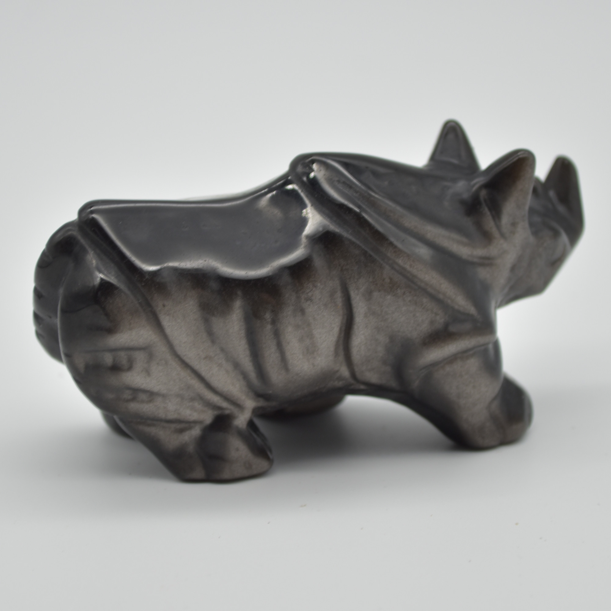 Natural Polished Silver Sheen Obsidian Semi-precious Gemstone Carved Rhinoceros