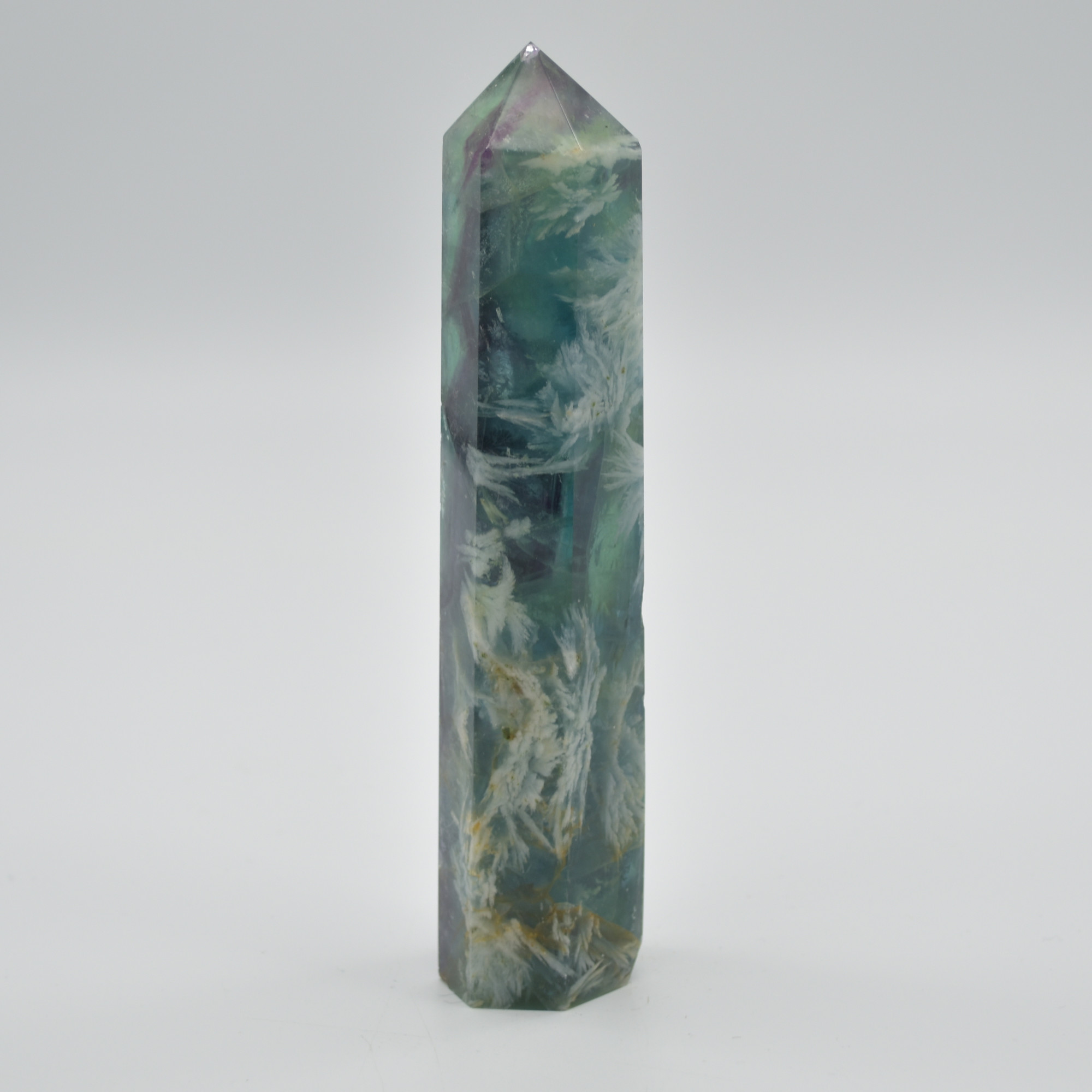 Snowflake Fluorite Point, Tower, Wand – 280 grams