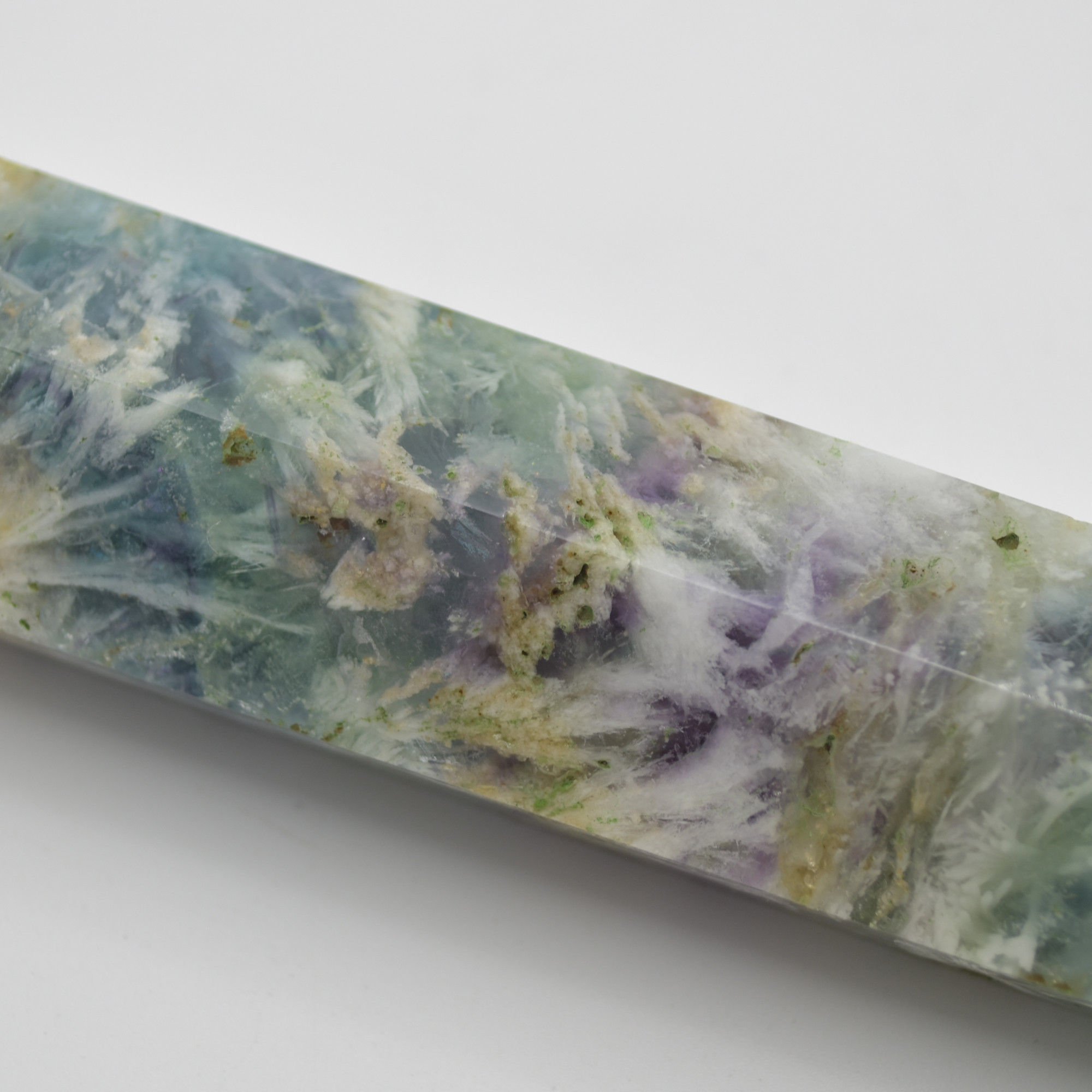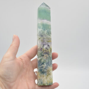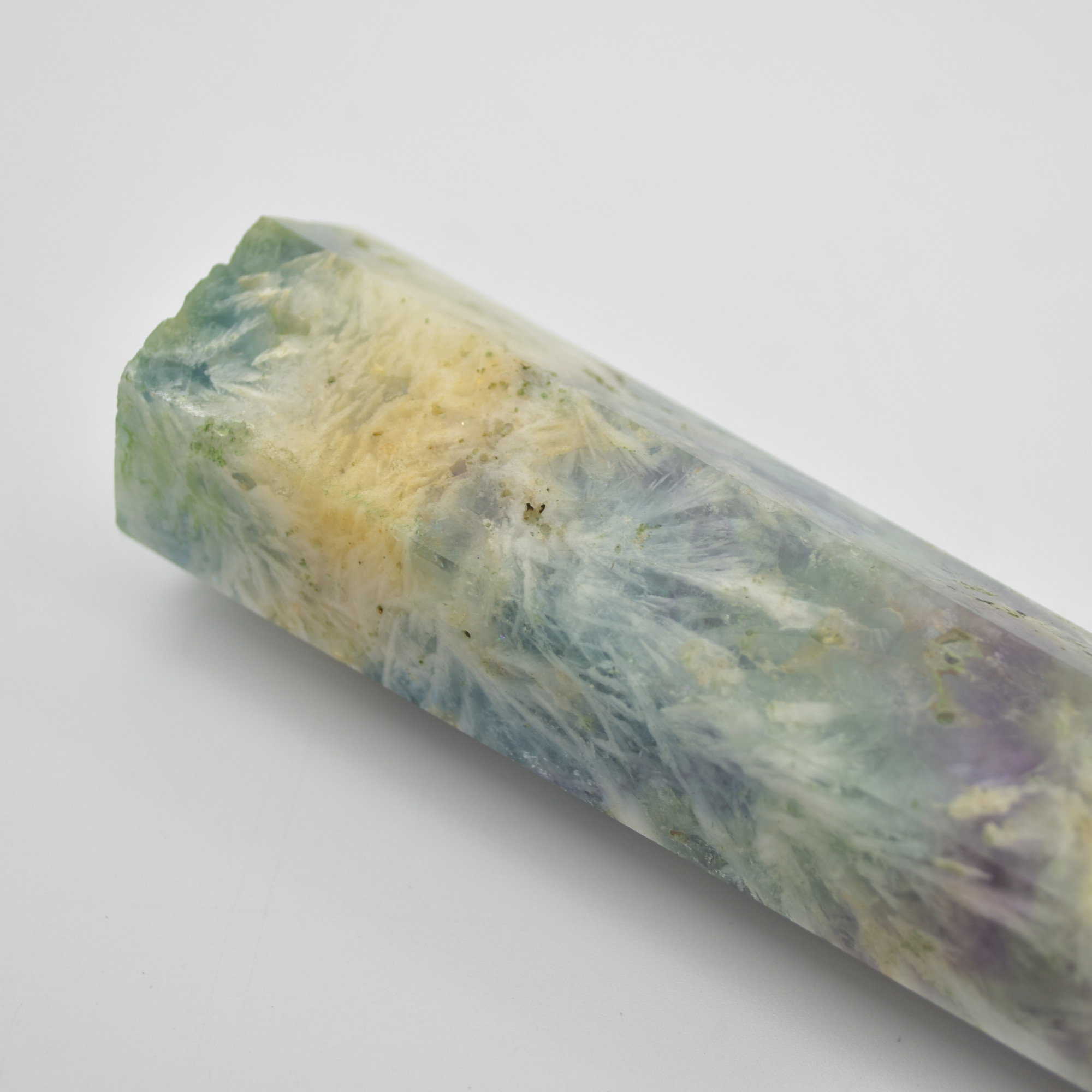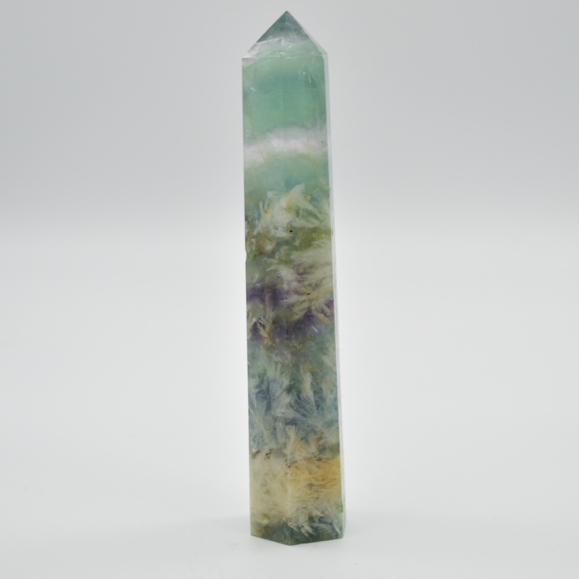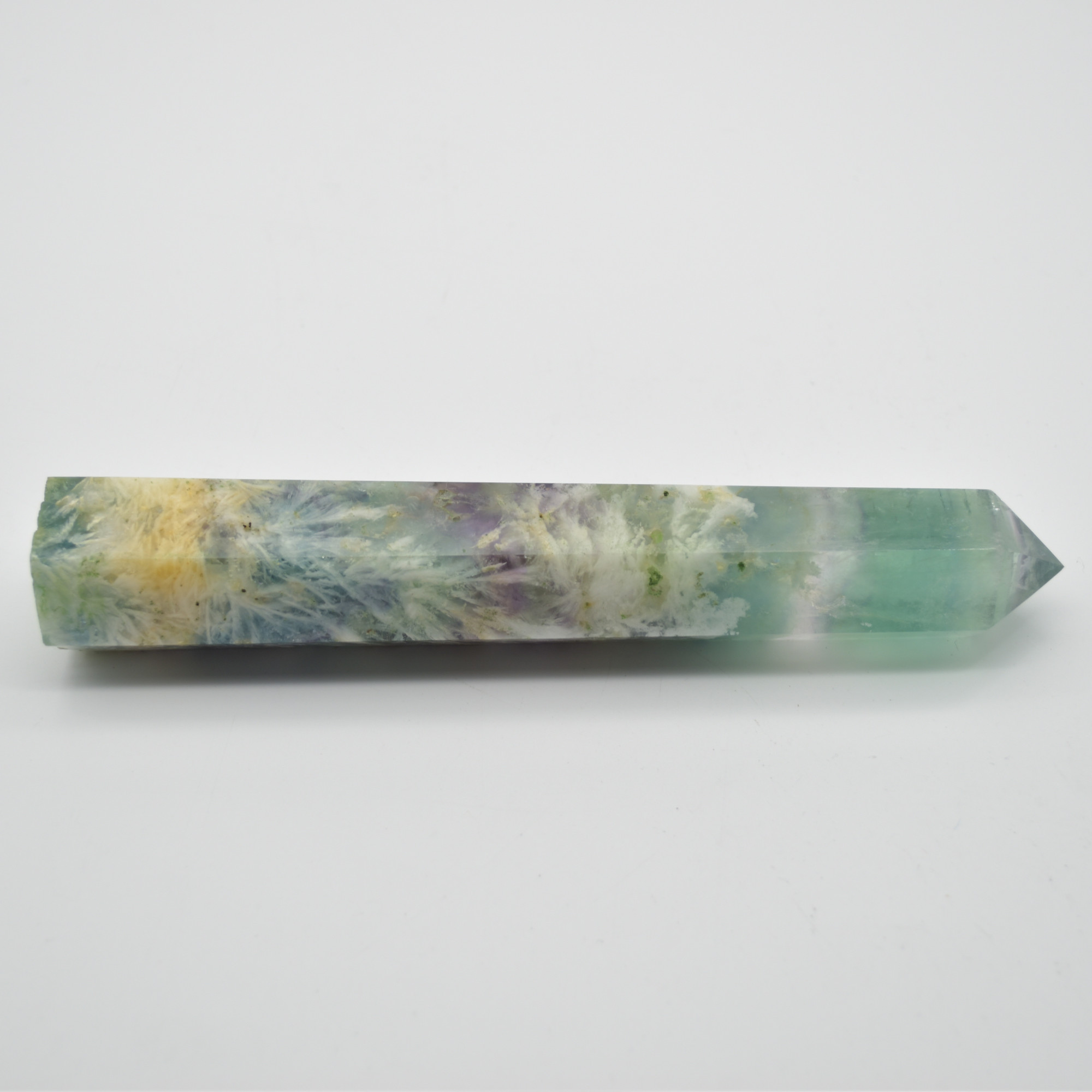 Snowflake Fluorite Point, Tower, Wand – 389 grams