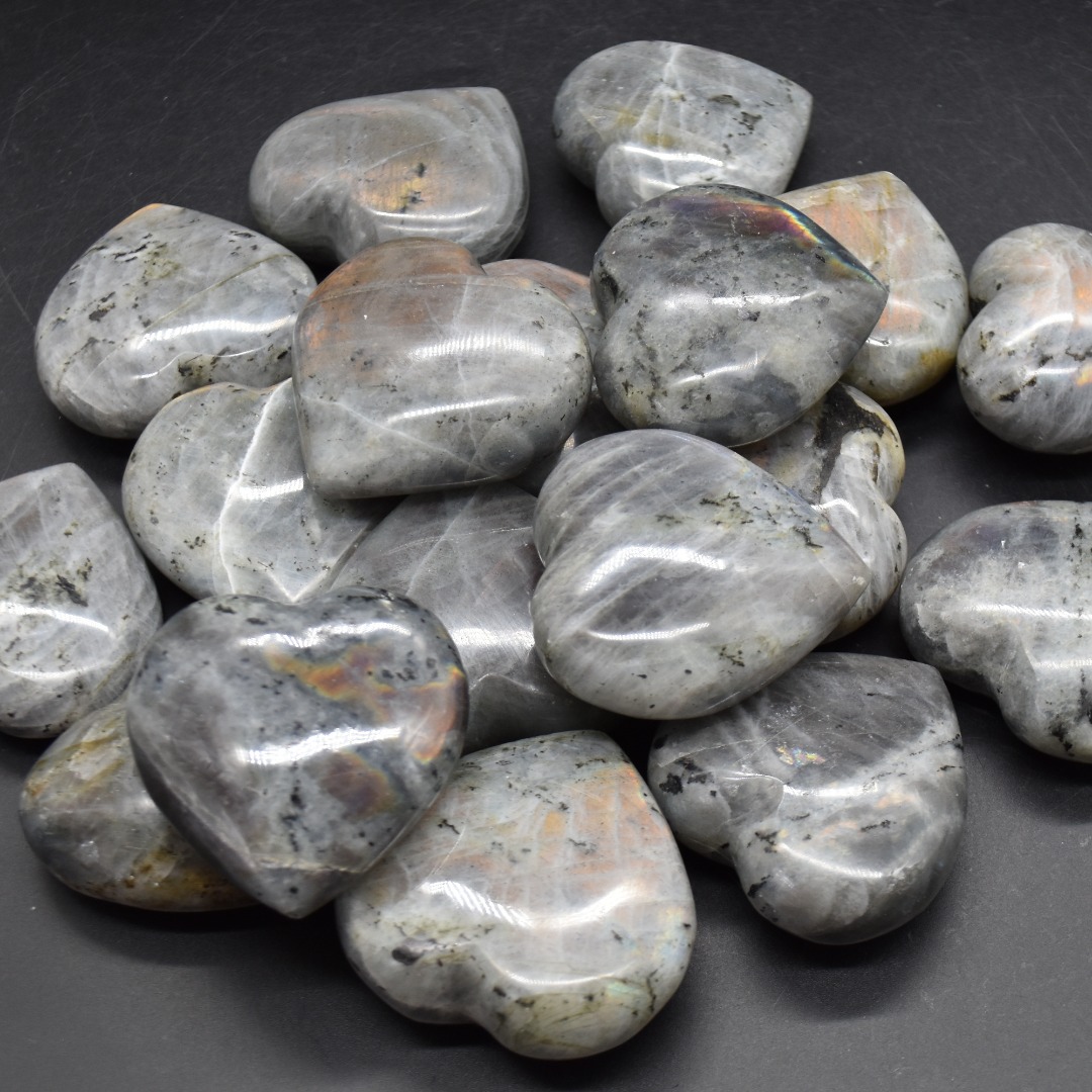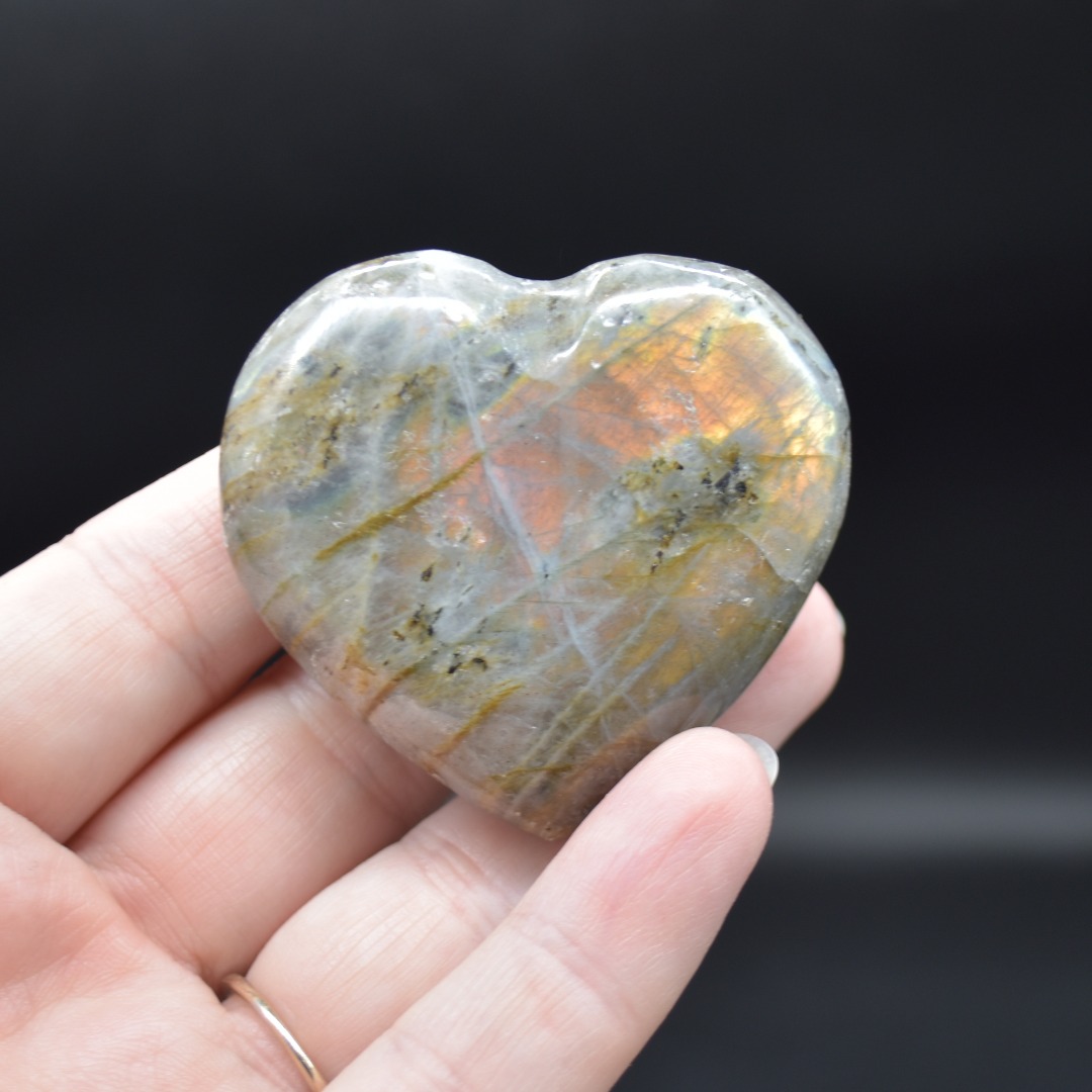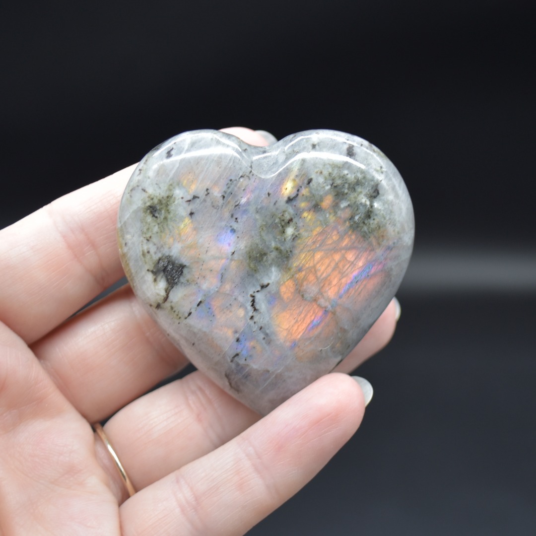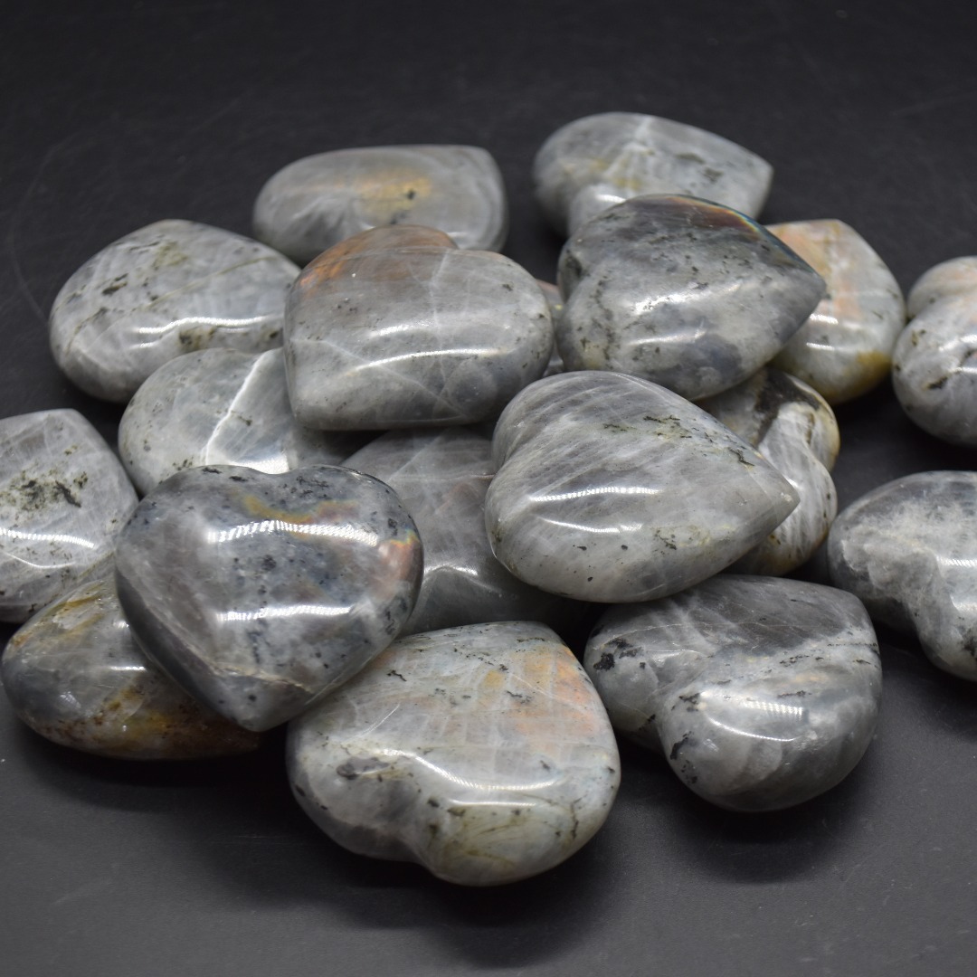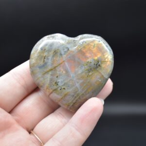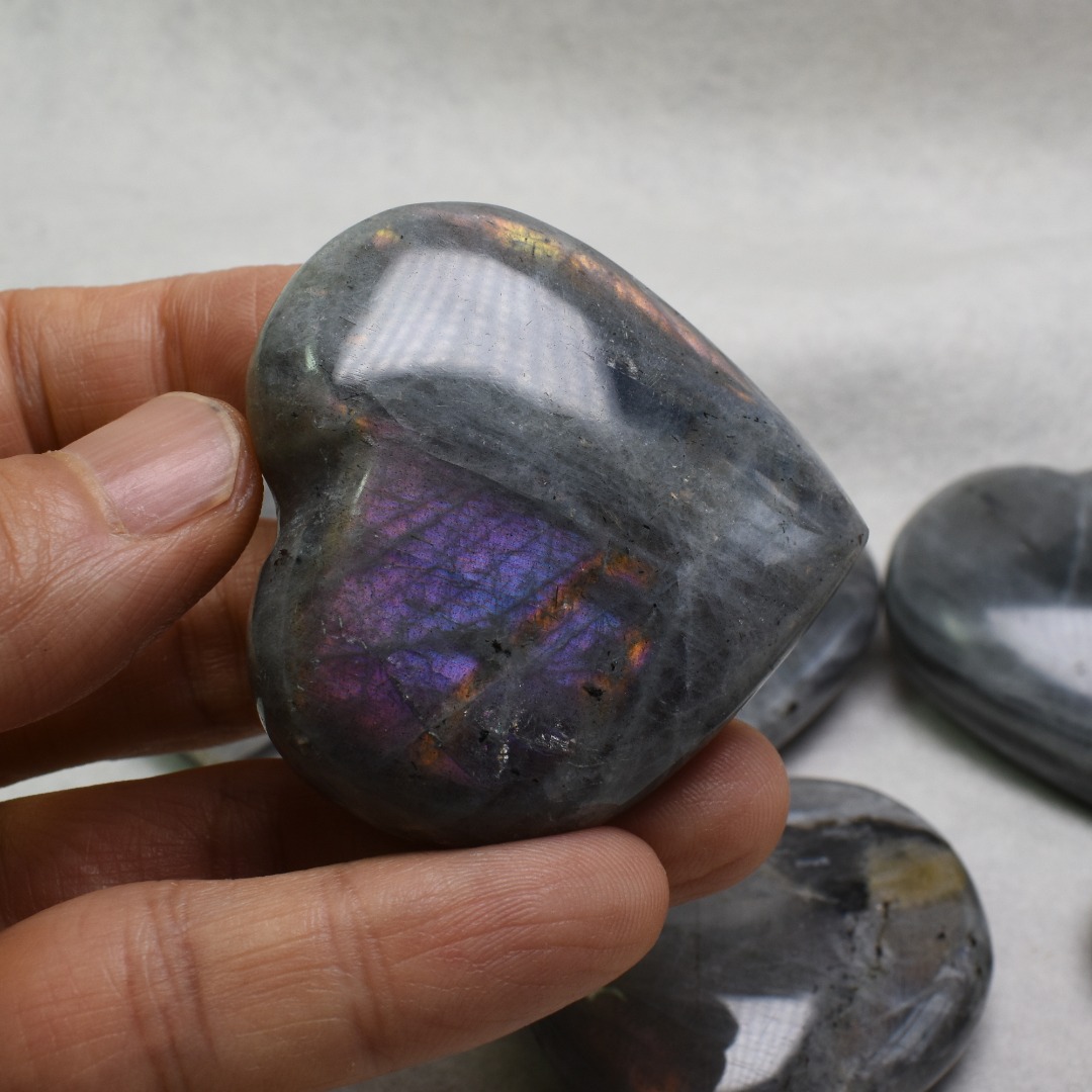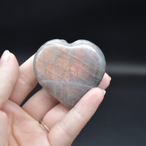 Quantity: 1 Labradorite heart will be carefully hand selected at random from our beautiful stock. Each crystal shows some purple or orange flashes under day light.