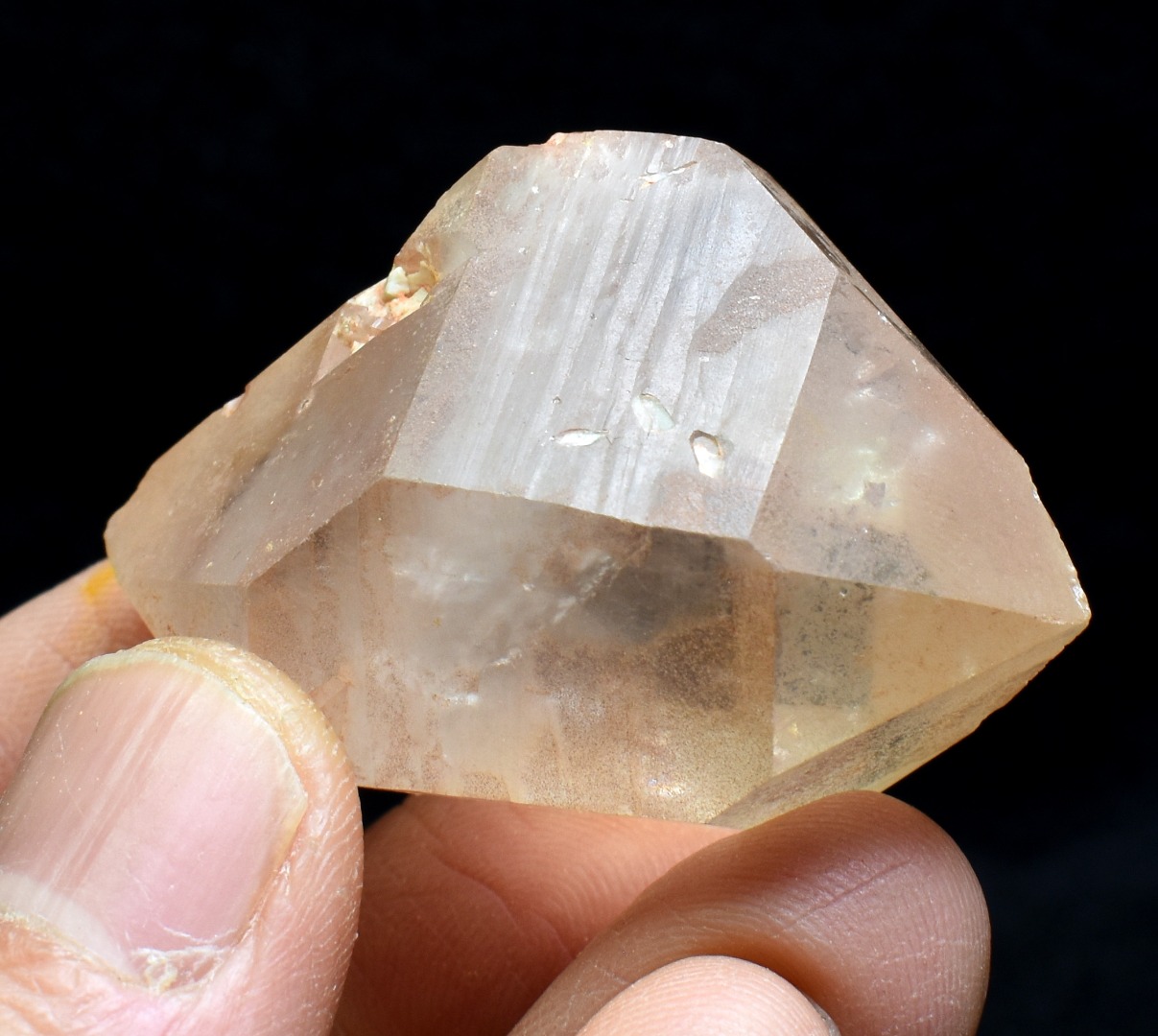 - Tangerine Lemurian Quartz Double Terminated Crystal Point, Tower, Wand with Rainbow Hues within the stone