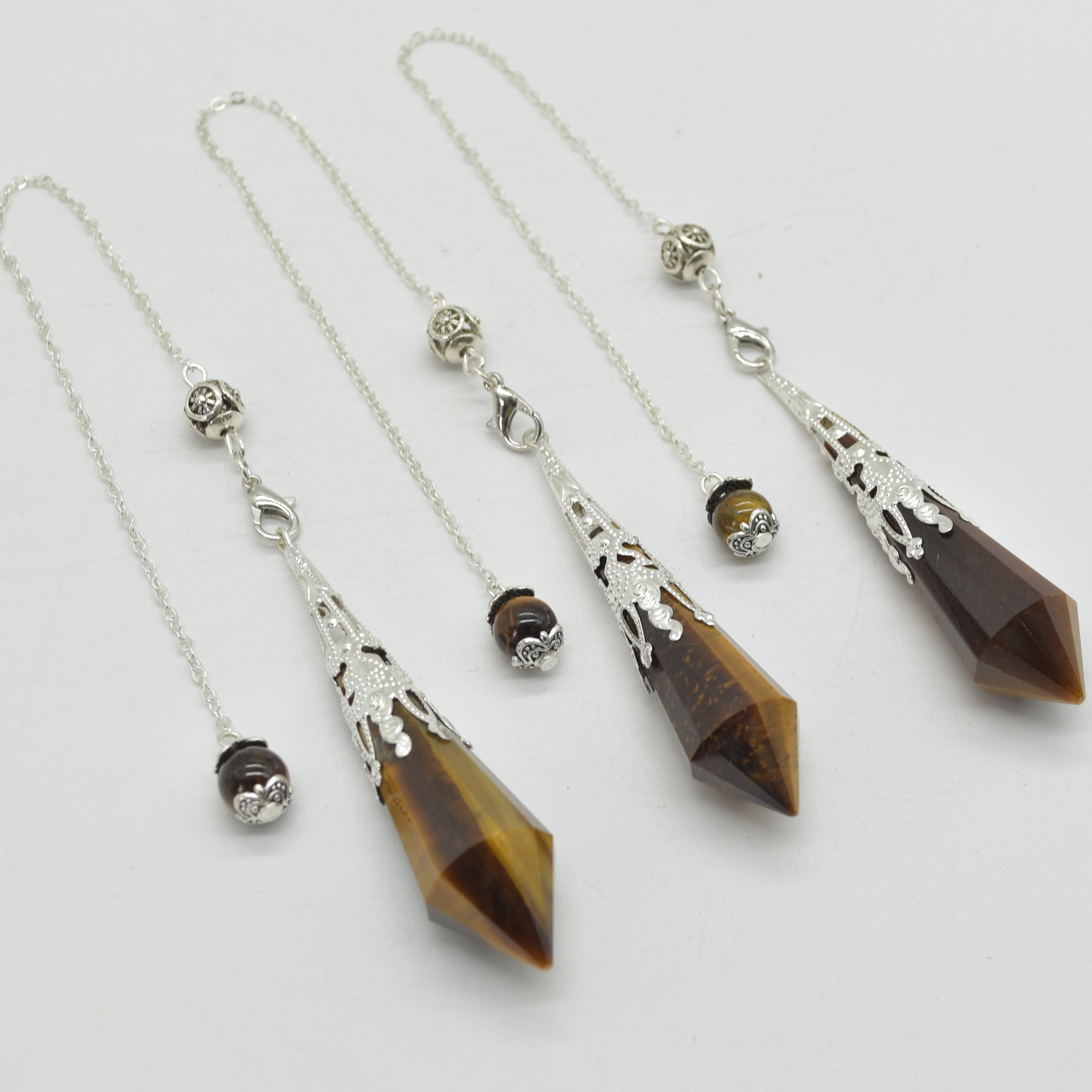 Natural Polished Tiger Eye Faceted Gemstone Pendulum
