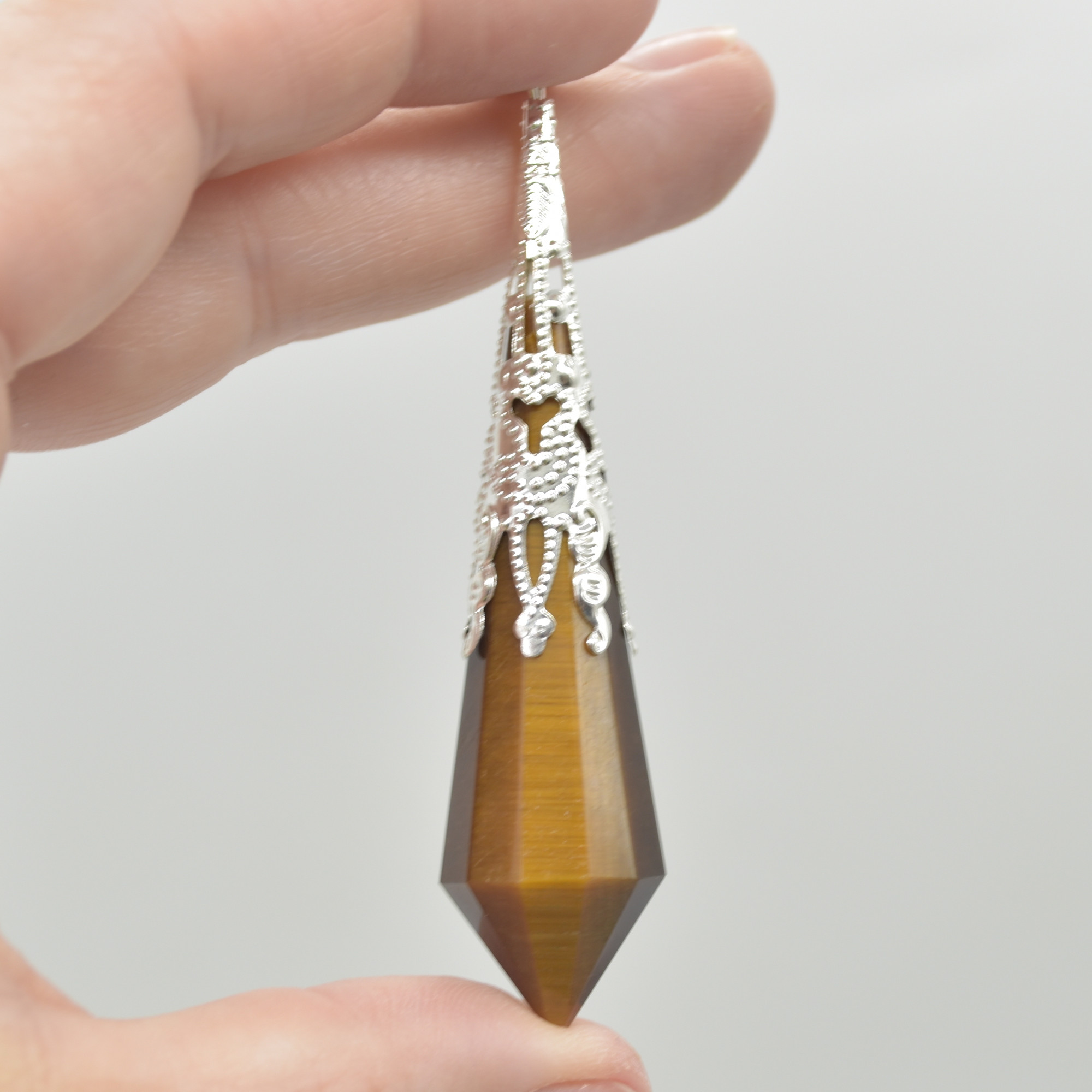 Tiger Eye Faceted Crystal Pendulum – 1 Count – 7cm