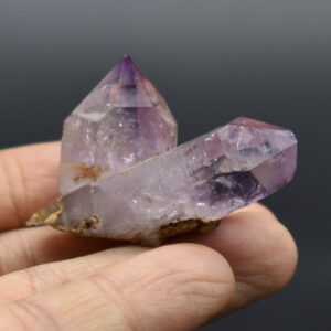 Amethyst most commonly forms in clusters or crystalline masses, however, Vera Cruz Amethyst forms as single or clustered stalactites, which are individual elongated crystal points with brilliant lustre which are often double terminated, some have scepter tips and many contain amethyst phantoms within their crystal shafts. On rare occasions, a water or gas bubble may also be present within the crystal. Graduated colouring can be seen with the darker colouring towards the top of the point while the pale, softer colours are merged into the stone.