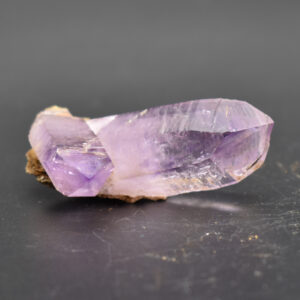 Amethyst most commonly forms in clusters or crystalline masses, however, Vera Cruz Amethyst forms as single or clustered stalactites, which are individual elongated crystal points with brilliant lustre which are often double terminated, some have scepter tips and many contain amethyst phantoms within their crystal shafts. On rare occasions, a water or gas bubble may also be present within the crystal. Graduated colouring can be seen with the darker colouring towards the top of the point while the pale, softer colours are merged into the stone.