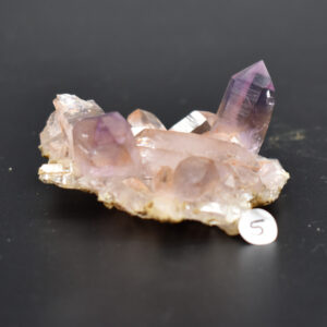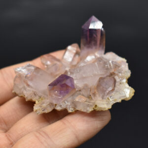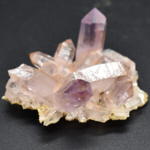 Amethyst most commonly forms in clusters or crystalline masses, however, Vera Cruz Amethyst forms as single or clustered stalactites, which are individual elongated crystal points with brilliant lustre which are often double terminated, some have scepter tips and many contain amethyst phantoms within their crystal shafts. On rare occasions, a water or gas bubble may also be present within the crystal. Graduated colouring can be seen with the darker colouring towards the top of the point while the pale, softer colours are merged into the stone.